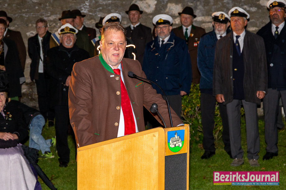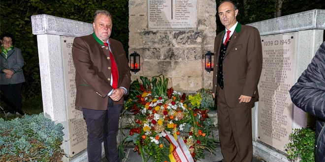 Grußworte und Wort zum 10. Oktober kamen von Bürgermeister Martin Treffner. Die Kranzniederlegung erfolgte im Anschluß gemeinsam mit Bezirkshauptmann Dr. Dietmar Stückler.
