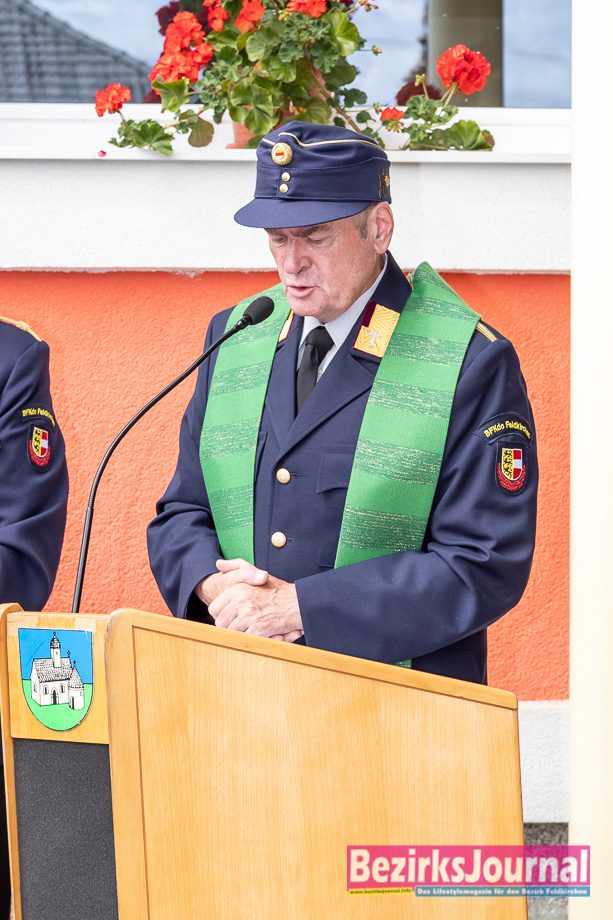 Nach der Feldmesse bei der Volkschschule Glanhofen erfolgte der Einmarsch der Kameraden des Abschnittes Feldkirchen – Ossiacher See. Der Kommandant der FF Glabhofen, Drolle Wolfgang konnte zum Abschnittstag Vetreter der Stadtgemeinde Feldkirchen mit Bgm Martin Treffner, Vzbgm. Karl Lang sowie Feuerwehrreferent SR Herwig Tiffner begrüßen. Ebenso die FF-Funtionäre BFK-Stv. Heinz Zeppitz, AFK Fritz Nusser, die FF-Geistlichlichkeit und Abordnungen der Abschnittsfeuerwehren.
