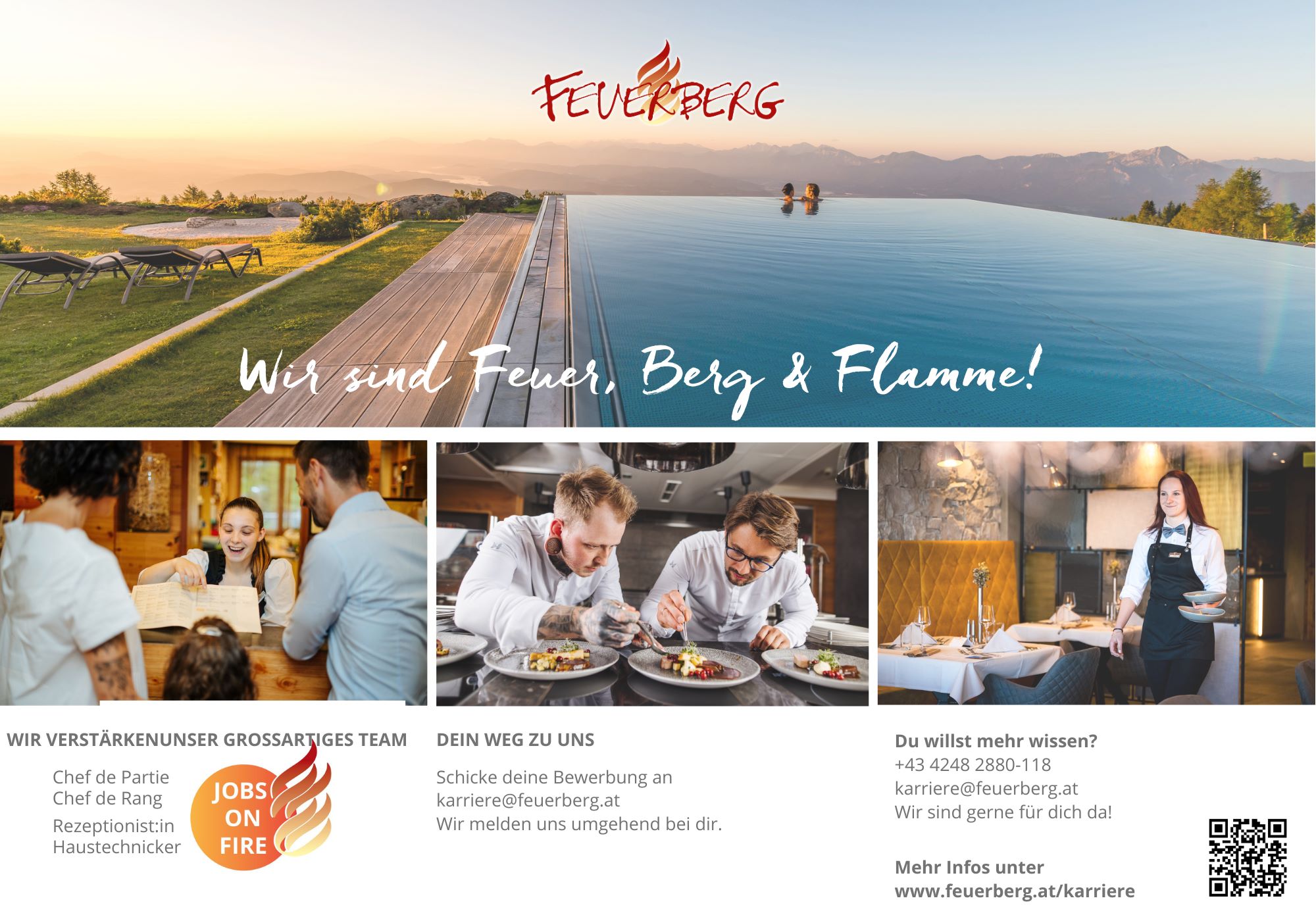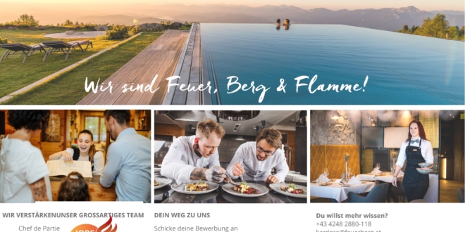 Um sich als Arbeitgeber ständig weiterzuentwickeln, stellt sich das Mountain Resort Feuerberg freiwillig unabhängigen Mitarbeiterbefragungen und Arbeitgeberbewertungen. Doch auch unabhängige Medien bewerten. So wurde der Feuerberg z. B. im Vorjahr vom Fachmagazin Rolling Pin als bester Arbeitgeber“ ausgezeichnet. Den Teamspirit spüren auch die Gäste. So gab es kürzlich zum 13. Mal in Folge den Gold Award von „Holiday Check“. www.feuerberg.at