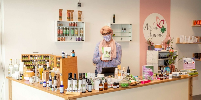 Ihre Mutter ist eine Liebhaberin exotischer Gewürze oder spezieller Teemischungen? Auch das fi nden Sie bei Aroma Simone. „Unsere Gewürze sind mit Hanfblättern versehen und lassen jedes Gericht zum Gedicht werden“, schwärmt Inhaberin Simone Lackner.