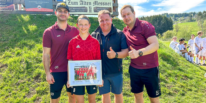 Gemeinsam wurden sie im Rahmen einer kleinen Ehrung am Sportplatz in Steuerberg auch offiziell von der Mannschaft und Funktionären verabschiedet. Der erfahrene Trainer zum Erfolgsgeheimnis: „Arbeit schlägt Talent. Alle Vier hatten eine überragende Trainings- und Spielbeteiligung; entwickelten eine eigene, disziplinierte und entschlossene Persönlichkeit. Man merkte ihnen den Spaß und die Begeisterung an. Sie können es bestimmt weit schaffen und wir wünschen ihnen alles Gute für den nächsten Schritt!“