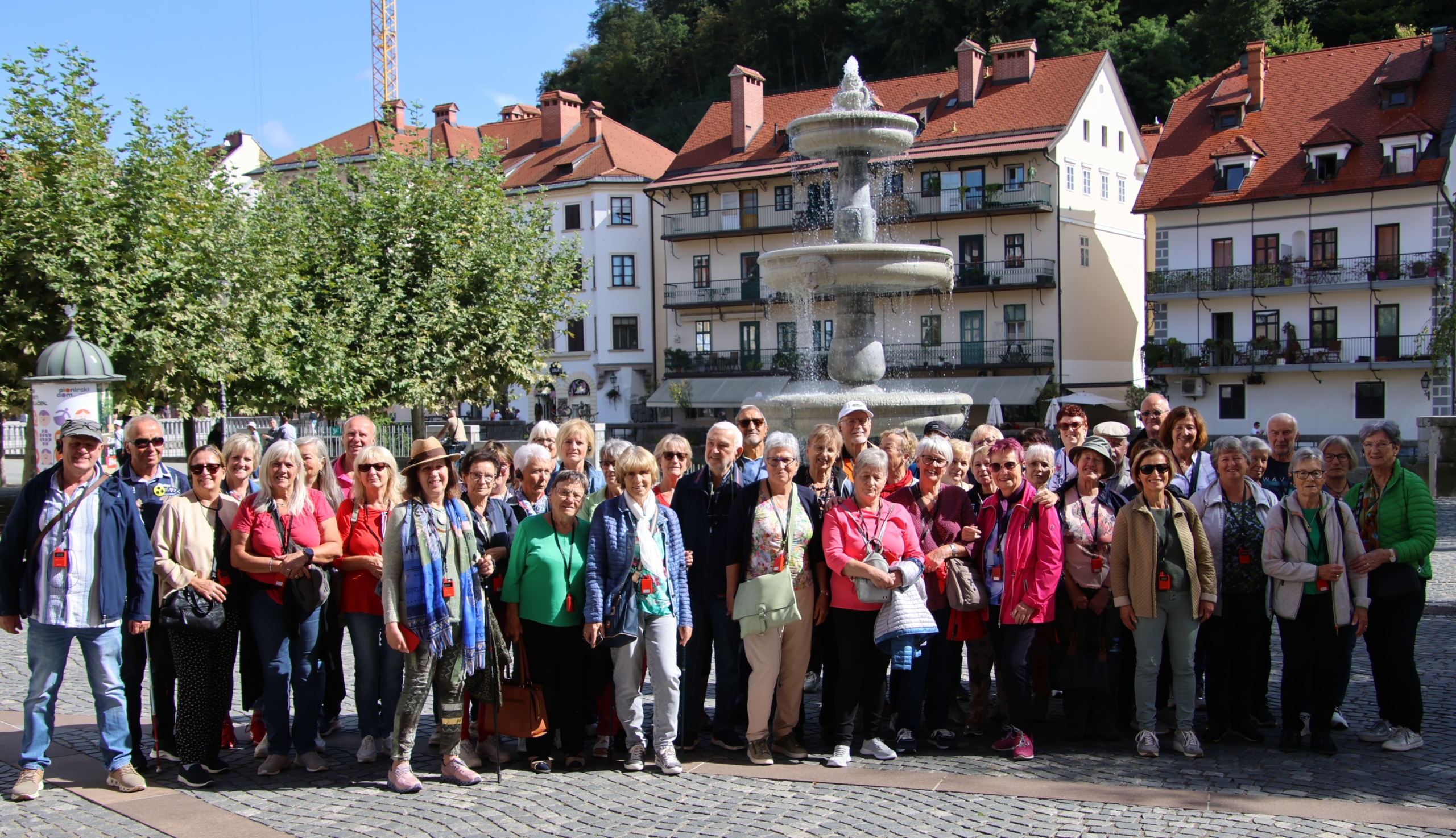 Bei einer zweistündigen Stadtführung entdeckten die Teilnehmer:innnen die reizvolle Altstadt entlang der Ljubljanica, die mit ihren lebendigen Plätzen, engen Gassen und beeindruckenden Bauwerken eine ganz eigene Atmosphäre ausstrahlt. Spannende Geschichten und Einblicke in die wechselvolle Vergangenheit fesselten die Ausflugsgesellschaft.