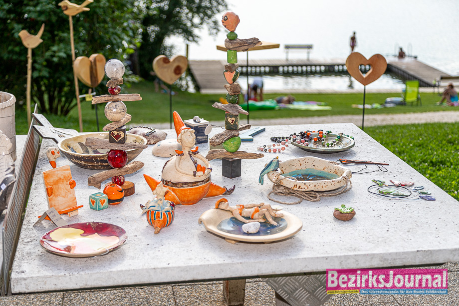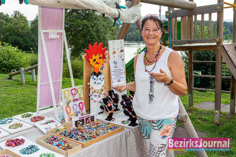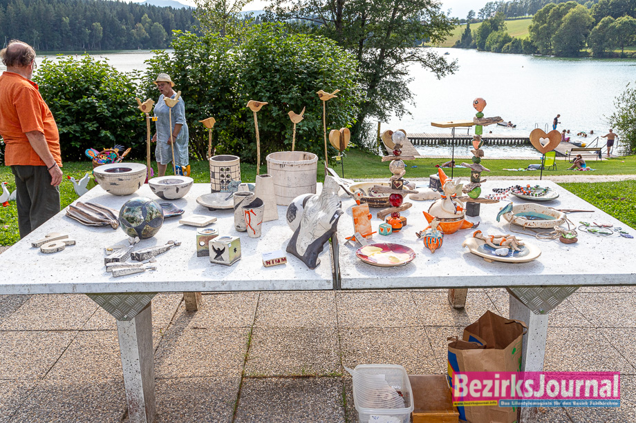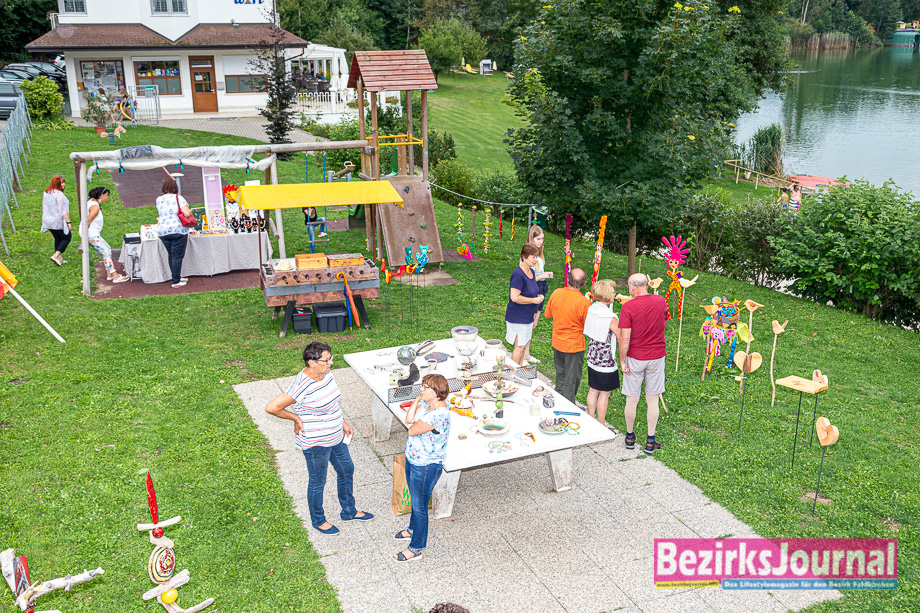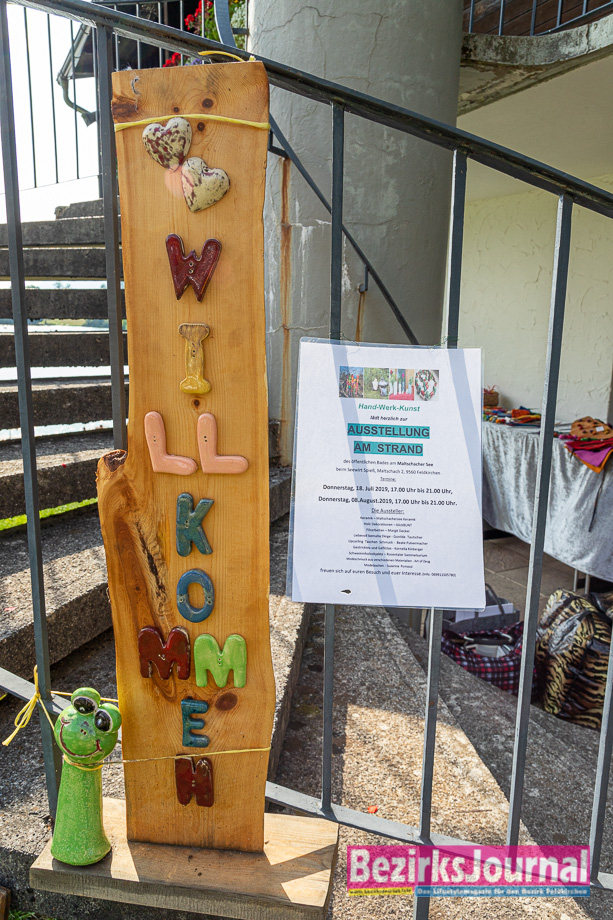 Auf Initiative von Frau Eva Maria Walcher führte „Hand-Werk-Kunst“ am Gelände des öffentlichen Bades beim Seewirt Spieß am Maltschacher See bereits zum zweiten Mal eine Kunsthandwerk-Ausstellung durch.