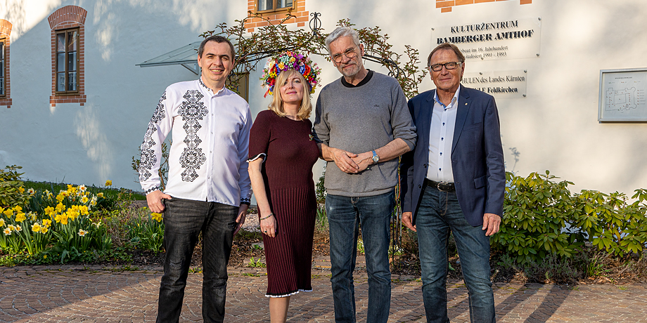Unter dem Motto „Schwarze Erde – weites Land“ fand vergangenen Samstag das Begegnungskonzert mit Geflüchteten aus der Ukraine im Feldkirchner Amthof statt. Dabei stellten geflüchtete Menschen ihr Land, die Ukraine, vor – mit Bildern, Erzählungen und kleinen Köstlichkeiten. Wie der ukrainische Flüchtling Stepan Yavorskyi, der mit seiner fünfköpfigen Familie im Antoniumsheim in Feldkirchen Zuflucht fand und erst seit einem halben Jahr die deutsche Sprache lernt. Begleitet wurde der karitative Abend mit Klängen aus der Ukraine und Osteuropa, bestens präsentiert von der oberösterreichischen Musikgruppe „kohelet3“ mit Bohdan, Ewa, Kurt und Barni. Die gesammelten freiwilligen Spenden (anstelle eines Eintrittsgeldes) gehen nun an die Ukrainehilfe. Organisiert wurde der Abend von der Flüchtlingshilfe der evangelischen Pfarrgemeinde Waiern „helping hands“, federführend Pfarrer Martin Müller und Josef Szarvas, vom Mitarbeiter-Team des Antoniusheimes sowie von der röm.-kath. Pfarre Feldkirchen.