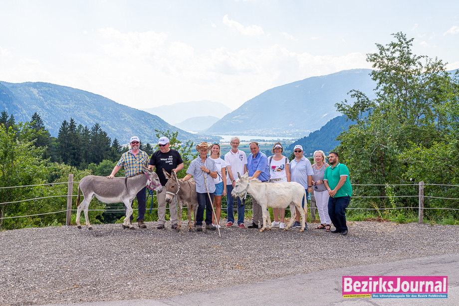 Am nächsten Tag gab es nach dem Besuch am Wochenmarkt eine Eselwanderung auf die Pollenitz zur Buschenschank Buttazoni vlg. Kraut. Dabei konnten die Gäste nicht nur die schöne Landschaft genießen sonder sie konnten sich auch von einer hervorragenden Kärntner Jause überzeugen.