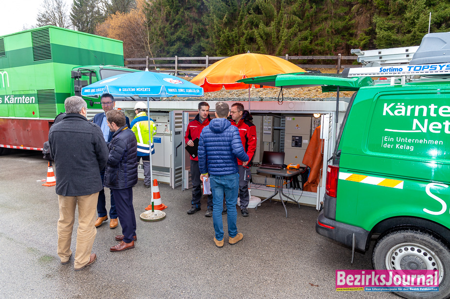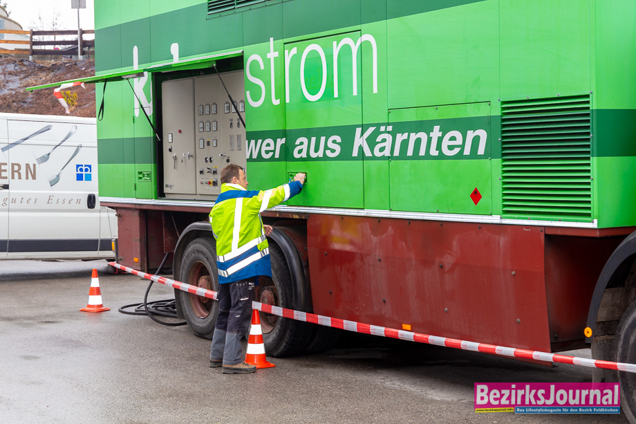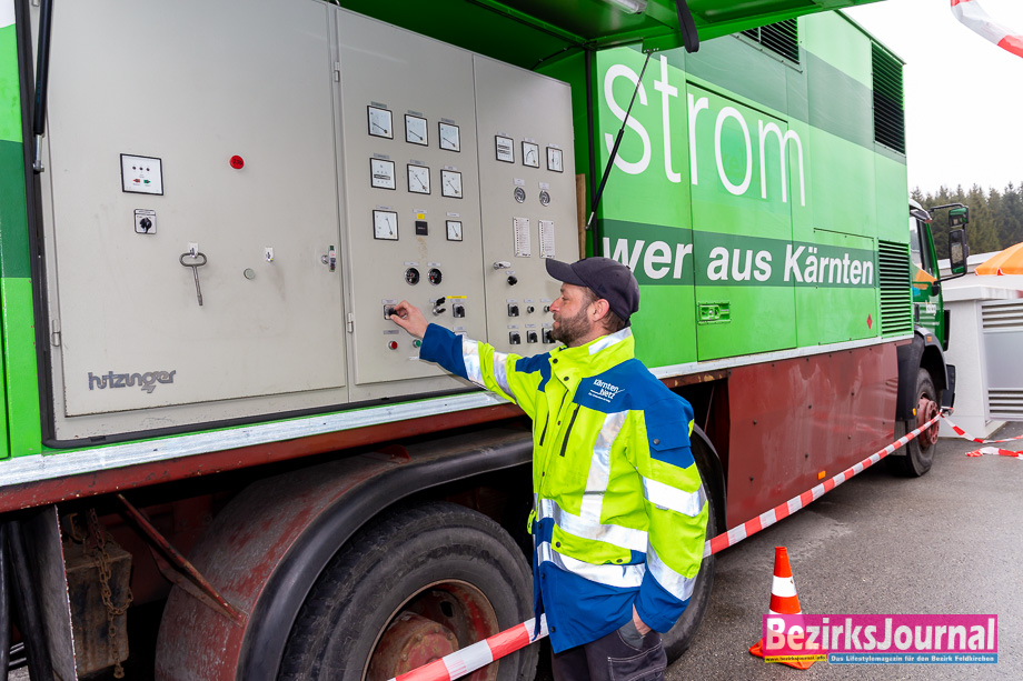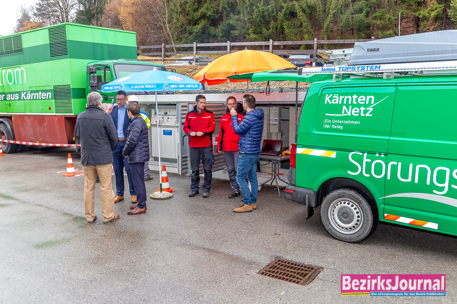 Die Übung für den Ernstfall schaute sich auch Bürgermeister Martin Treffner an: „Es ist wichtig, diesen Ernstfall zu üben. Auch wir haben zum Beisiel für unsere Hochbehälter ein Notstromaggregat, um die Wasserversorgung im Notfall sicherzustellen.“ Noch bei der Übung dabei waren WVO Norbert Schwarz, von der BH Feldkirchen Mag. Robert Derhaschnig und Stefan Wadl sowie Diakonie Sicherheitschef Wilhelm Wahlhütter und Küchenchef Michael Triebel.