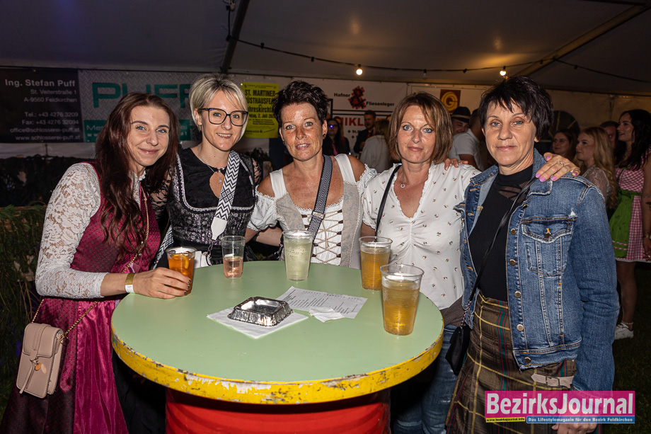 Die Mitternachtseinlage der „Huata Madln“ begeisterte mit „rockigen Schuaplattlern“. Bei einem Schätzspiel, bei dem das Gewicht einer gefüllten Zirbenholz Jaus’nbox zu erraten war, zeigten die Damen den Herren wieder einmal, dass Frau mit Gefühl einfach das sensiblere Händchen hat. Bis nach Mitternacht wurde auf dem 1. St. Martiner Dorffest ausgelassen gefeiert und getanzt und die Besucher zeigten sich vollauf begeistert. Der Wunsch nach einer Wiederholung im nächsten Jahr wurde vielfach geäußert.