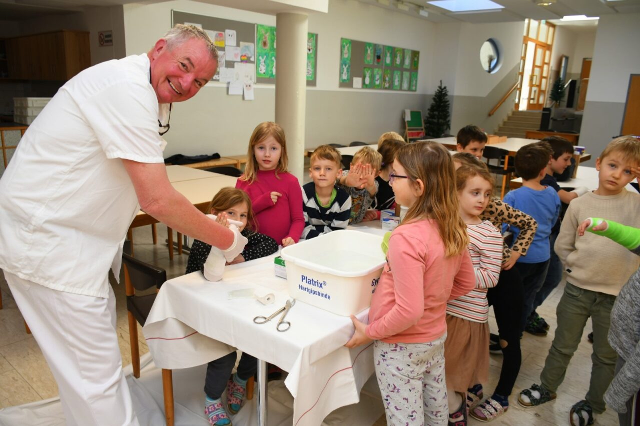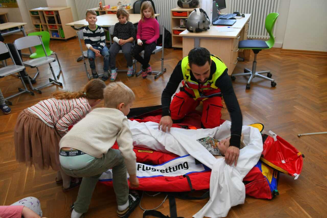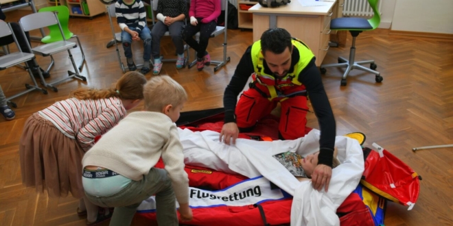 So wurden Wunden versorgt, Gipse angelegt und der eine oder andere in den Bergesack gepackt, um für den Notarzt-Hubschrauber gesichert abflugbereit zu sein. „Auch die stabile Seitenlage beherrschen nun alle, nachdem sie jeder selbst ausprobieren konnte. So wurde nicht nur viel dazugelernt, sondern auch gleich für den Ernstfall geübt!“, betont die Direktorin. Kinder und Lehrkräfte bedanken sich bei allen Mitwirkenden, vor allem bei Projektleiterin Sandra Gruber, für diesen wunderbar lehrreichen und wichtigen Nachmittag.