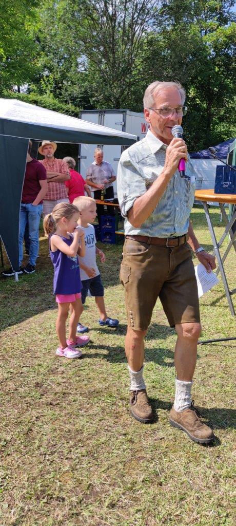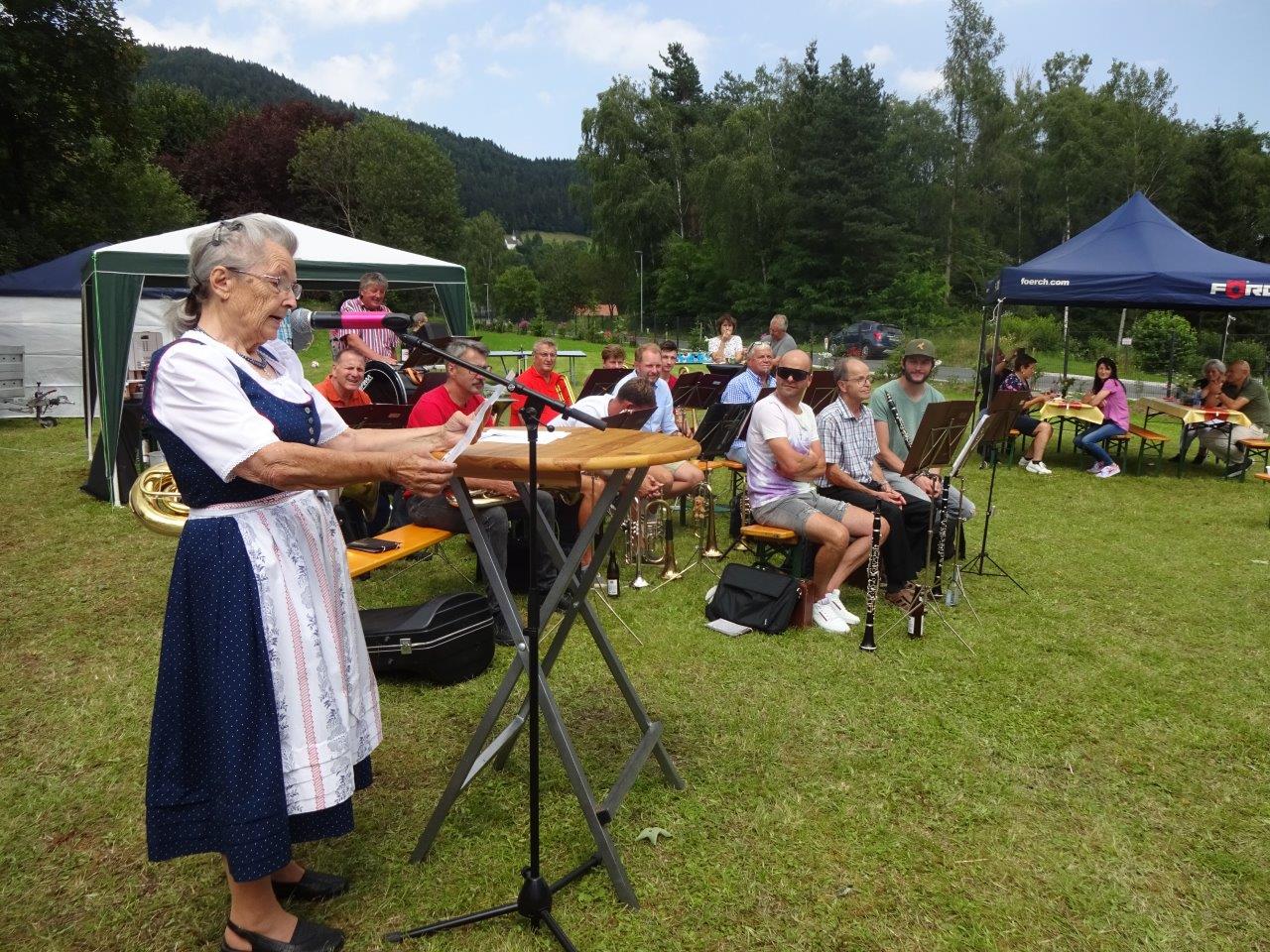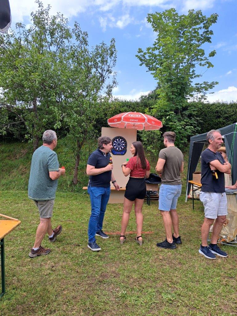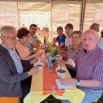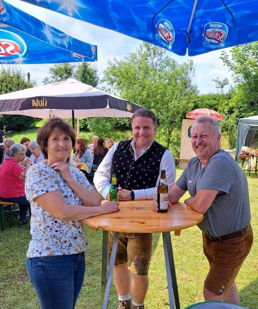 Alles war für das große Fest am Sonntag, den 23. Juli 2023 schon vorbereitet. Doch leider zerstörte ein Unwetter einige Zelte. „Noch am Abend sind alle gekommen, um den Platz für den nächsten Tag wieder perfekt herzurichten. Das ist eben gelebte Nachbarschaft. Viele sind dabei, wenn es gilt ein gemeinsames Projekt umzusetzen. Und dies, obwohl einige sich noch nie persönlich kennengelernt haben. Damit erfüllte sich bereits der Sinn dieses Dorftreffens“, betont Stiegelschneider Loise und erzählt weiter: „Und dann das Fest. Nahezu aus allen Häusern sind sie gekommen. Auch Weggeheiratete sind gekommen und haben sich mit den „Zugezogenen“ und der „Stammbevölkerung“ unterhalten. So manche Erinnerung wurde aufgefrischt und Freundschaften sind neu entstanden.“