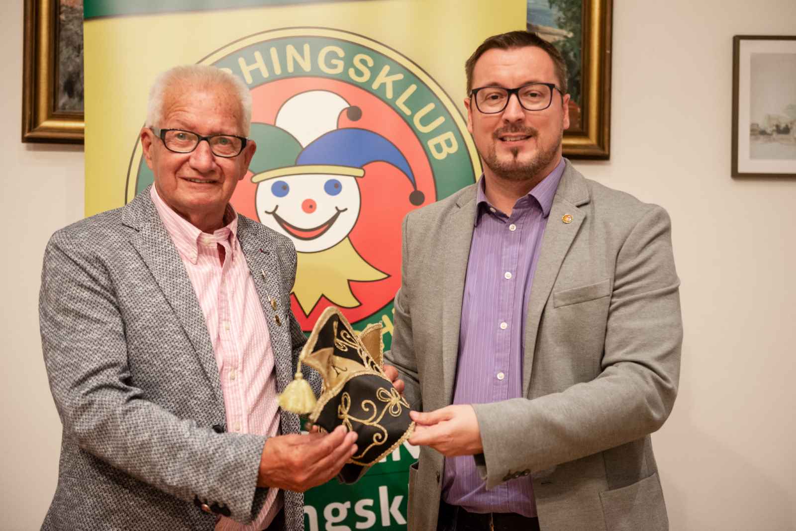 Narrenkappen-Übergabe: Ehrenpräsident Werner Robinig (links) mit seinem Nachfolger Peter Kowal Foto: © FFK/Maggie Pirker