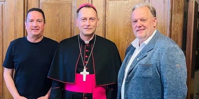 Otto Markus Hoffmann und Bürgermeister Martin Treffner trafen auch den Erzbischof von Bamberg, Herwig Gössl. Foto: Privat