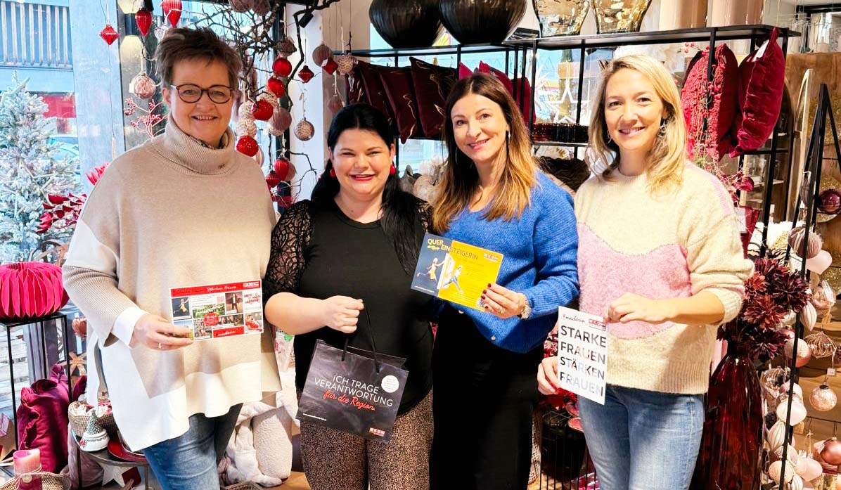 Frauen, die mit Mut, Organisationstalent und Herzblut unternehmerische Verantwortung übernehmen, stehen im Mittelpunkt der Initiative Frau in der Wirtschaft Feldkirchen. Im Rahmen einer Betriebsbesichtigung waren kürzlich FiW-Bezirksvorsitzende Brigitte Truppe-Bürger, WKK-Vizepräsidentin Astrid Legner sowie FiW-Delegierte Kathrin Peczelt on Tour und besuchten die Feldkirchner Unternehmerin Katharina Rabitsch, Inhaberin der beliebten „KaRa“-Deko-Boutique & des Cafés „KaFe“.