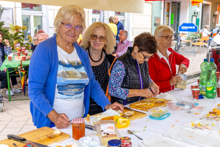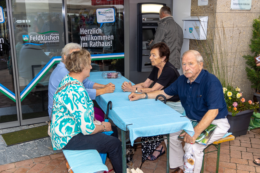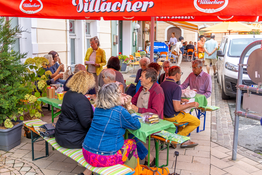Am Samstag, den 3. August 2024, luden der Seniorenbund und die Frauenbewegung Feldkirchen, unter Obfrau Brigitte Bock, wieder zum traditionellen „Frühstück am Hauptplatz“ ein. „Diesmal leistete uns unsere Landesobfrau, NRin Elisabeth Scheucher, den ganzen Vormittag Gesellschaft“, freut sich Bock und betont: „Dieses Mal war unser Stand besonders gut besucht. Es kamen wirklich sehr, sehr viele Leute!“. Wie immer, gab es auch diesmal wieder köstliche Schmankerln sowie hausgemachte Torten und Schaumrollen. Wer die Leckereien nicht gleich vor Ort mit einem Kaffee genoss, der nahm sie mit nach Hause.