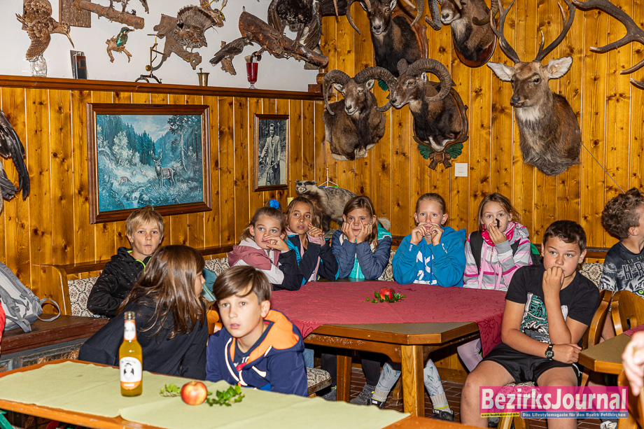 „Mein Mann hat viele Tierpräparate in seiner Jagdhütte“, so Grete Puff. Anhand dieser ist man die Wildtiere durchgegangen – vom Rotwild über Wildschweine bis hin zu Waldvögeln. „Die Kinder waren sehr interessiert, haben laufend Fragen gestellt und auch viele Geschichten erzählt. Es hat ihnen so viel Spaß gemacht, dass sie gerne noch länger geblieben wären“, freut sich das Organisationsteam. „Wir haben noch selbstgemachte Muffins und Kuchen gereicht. Auch draußen vor dem Haus wurde noch gespielt und getobt. Zum Abschied überreichten wir noch selbstgebastelte Abschiedsgeschenke wie Schlüsselanhänger aus Hirschgeweihen, Edelsteinanhänger, handgefertigte Mini-Stofftiere, Malbücher und und und“, freut sich die Obfrau über den gelungenen Vormittag.