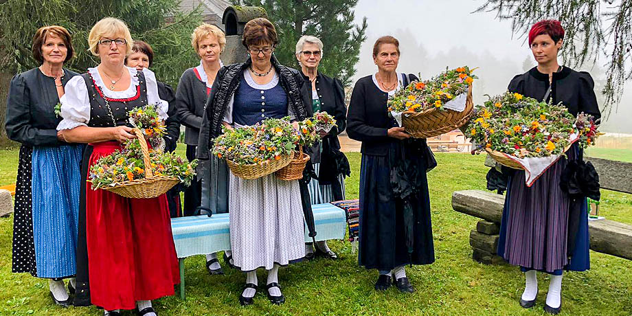 Bei der urigen Bauernstubn wurde die Hl. Messe mit Kräuterweihe und den Trachtenfrauen zelebriert. Erstmals trat auch die Kindervolkstanzgruppe auf.