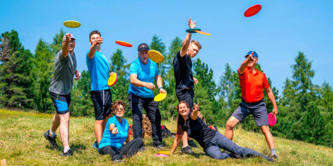 „Auf unserem Familienberg Hochrindl kann man seit ein paar Jahren, gleich neben unserer Hütte gelegen, Disc Golf spielen“, erklärt die sympathische Herzl-Wirtin Gabriele Martin. Das ist ein Spaß für die ganze Familie. Die Hütte ist auch Ausgangspunkt für die Erlebniswanderwege „König Waldgeist“ und „Zirbenzapfi“.