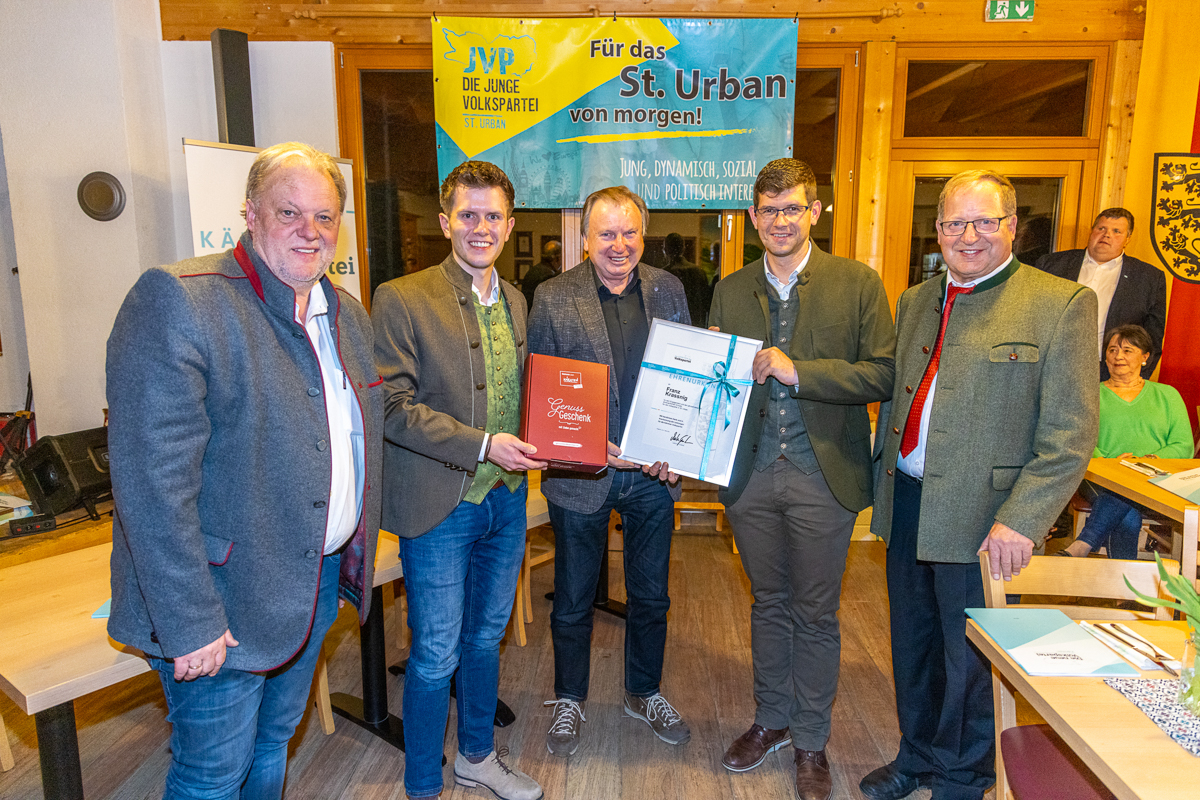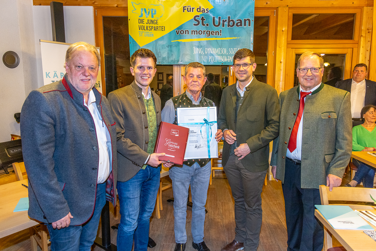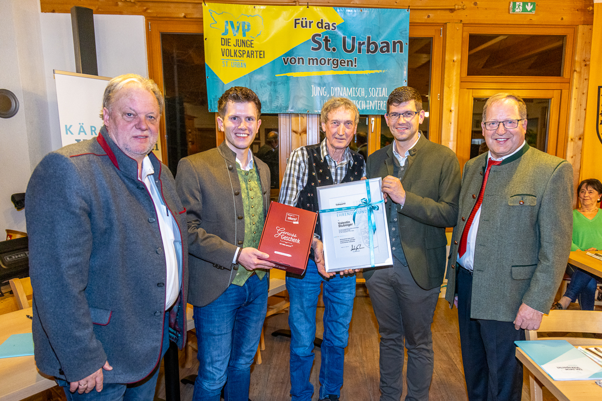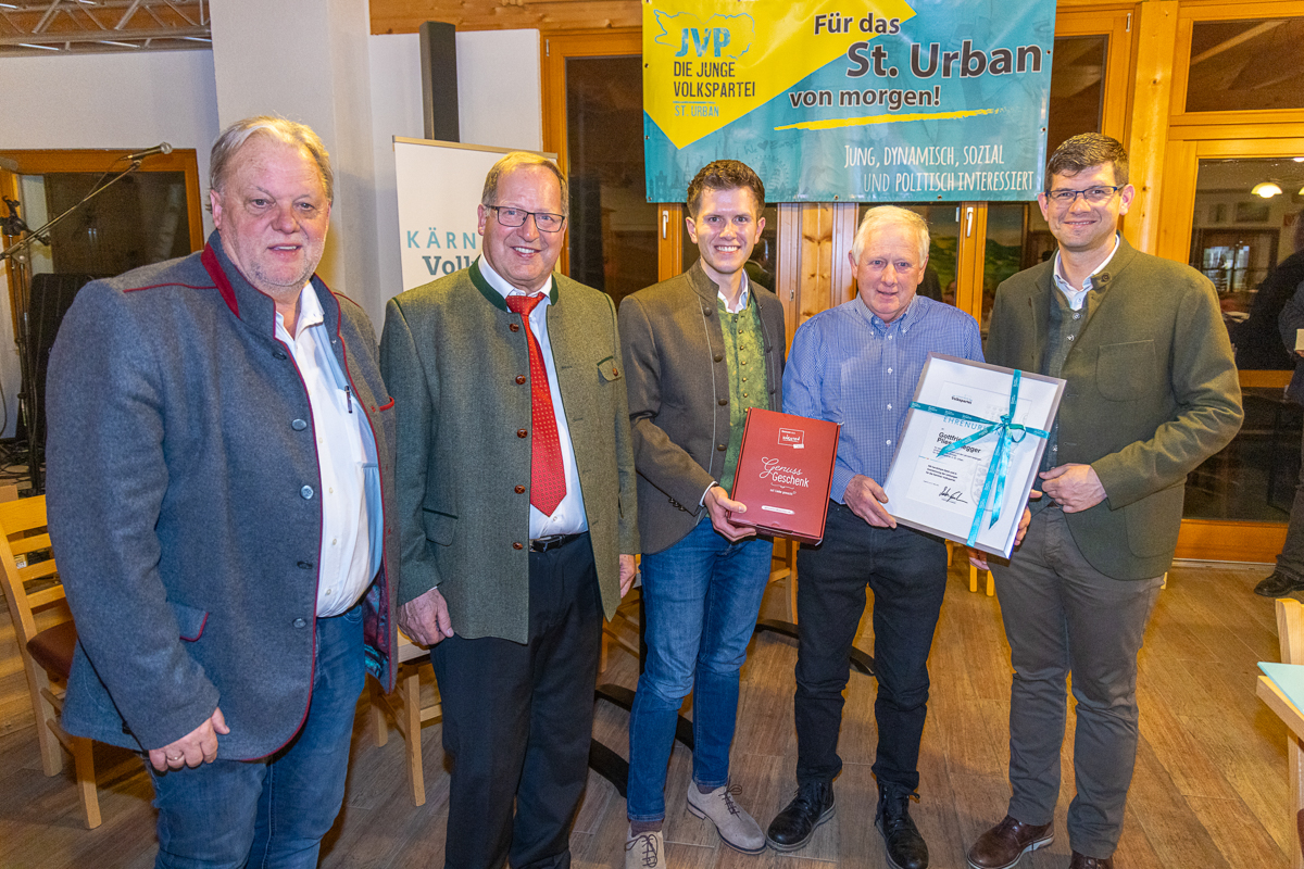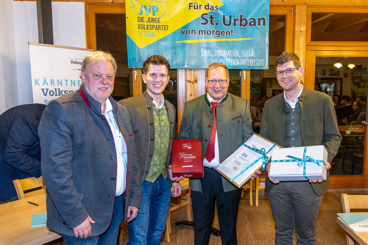 Die Neuwahlen beim Gemeindeparteitag der ÖVP St. Urban, diese fanden übrigens bei der Jausenstation Stubinger in Buggl in Bach statt, brachten einen Führungswechsel. Maximilian Kogler, der auch Obmann der JVP St. Urban, ist, übernahm die Funktion von Parteiobmann Helmut Sonvilla. Mit seinen 24 Jahren ist Kogler damit der jüngste Gemeindeparteiobmann Kärntens.