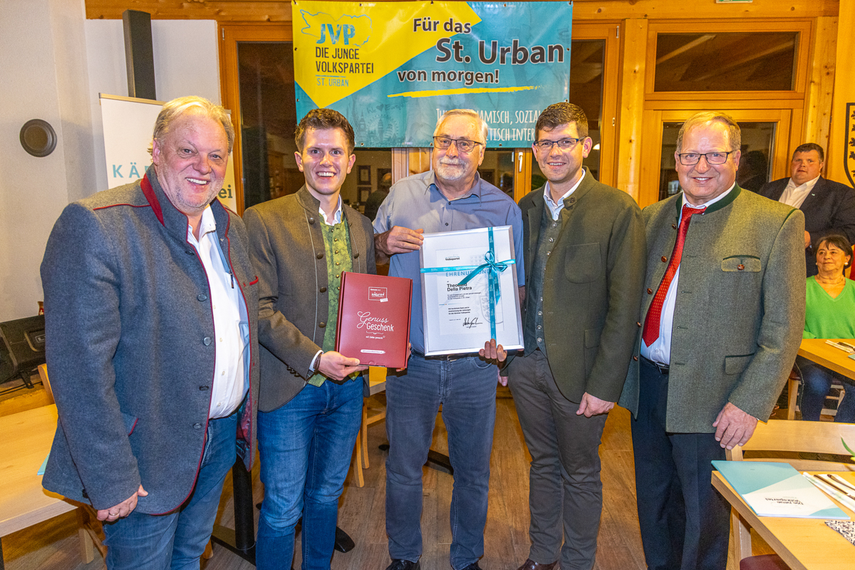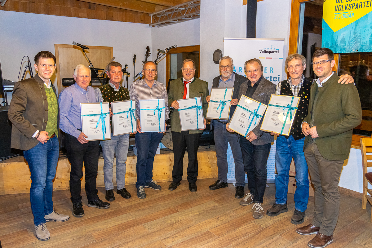 Bis zu 40 Jahre war der bisherige Vorstand mit Helmut Sonvilla, Gottfried Plieschnegger, Theo Della-Pietra, Erwin Scheiber, Peter Schellander, Martin Reiniger, Valentin Stubinger Senior und Franz Krassnig im Einsatz und wurde dementsprechend geehrt. Als Ehrengäste dabei waren LH-Stv. Martin Gruber und Bezirksparteiobmann Bgm. Martin Treffner.