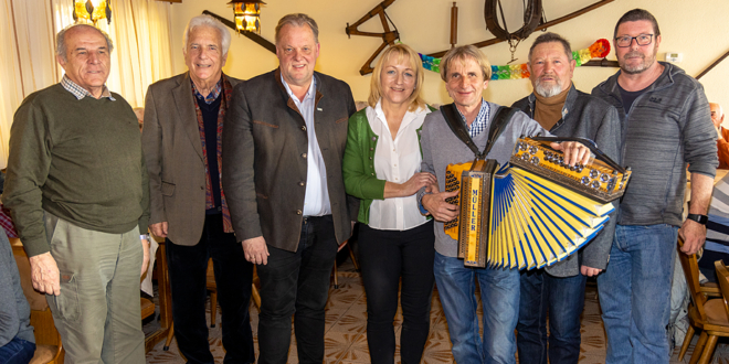 Rund 60 Mitglieder konnte der Vorstand rund um Obfrau Ingrid De Cillia im Gasthof Wadl auf der Pollenitz begrüßen. Die Kamerad:innen des Österreichischen Kameradschaftsbundes Feldkirchen trafen sich nämlich zum genüsslichen Fleischnudel-Schmaus samt Kaffee und Kuchen. „Das war heuer unser erstes gemeinsames Treffen. Wir hoffen, dass es nun so weiter geht“, freut sich Obfrau De Cillia über das Ende der Pandemieauflagen. Für musikalische Stimmung sorgte Ziehharmonika-Spieler Sigi Glanzer, Bandmitglied der „3 Wilderer“. Die Ehrengäste übernahmen die Zeche – Bürgermeister Martin Treffner lud auf Getränke ein, SPÖ-Klubobmann LAbg. Herwig Seiser aufs Essen. Ebenfalls begrüßt werden konnte Ehrenmitglied Erich Londer mit Gattin Dolores. Londer leitete über zwei Jahrzehnte lang als Obmann die Geschicke des Kameradschaftsbundes. Beim gemütlichen Beisammensein klang der Tag langsam aus.