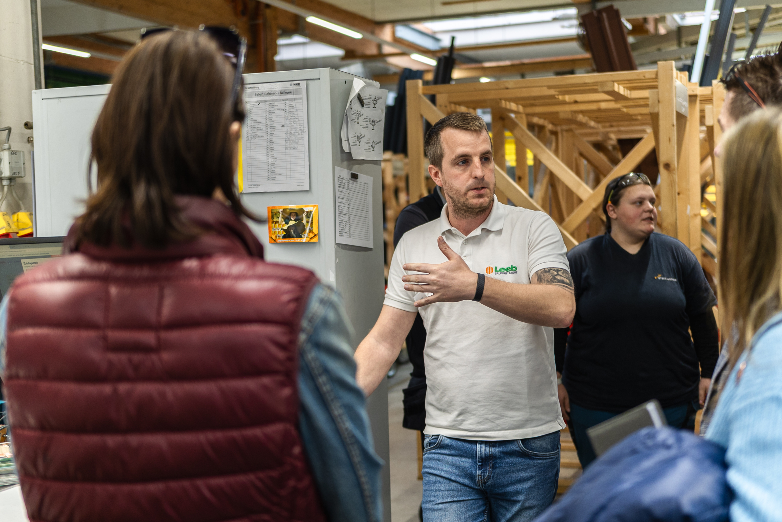 Mit Markus Leeb, Geschäftsführer in dritter Generation, wurde der nächste große Entwicklungsschritt konsequent vorangetrieben: die Transformation vom Holz- zum Metallbetrieb und vom Handwerks- zum Industriebetrieb. So werden nun rund 1.300 Tonnen Aluminium jährlich verarbeitet – ein klares Zeichen für die industrielle Dimension, die das Unternehmen mittlerweile erreicht hat. „Die erste Zeit war eher mühselig“, so Markus Leeb über die Umstellung auf Aluminium, die bereits Anfang der 2000er Jahre begann. Doch der Wandel war notwendig – und letztlich erfolgreich. Heute liegt der Holzanteil bei nur noch rund zwei Prozent, während Aluminiumprodukte den Kern des Geschäfts bilden.