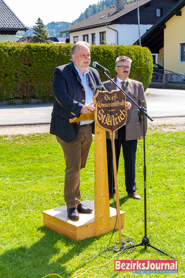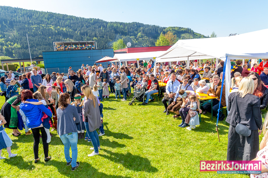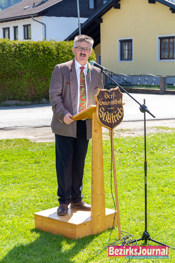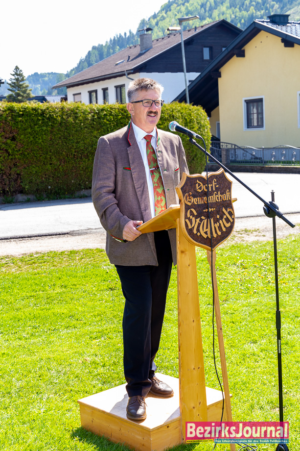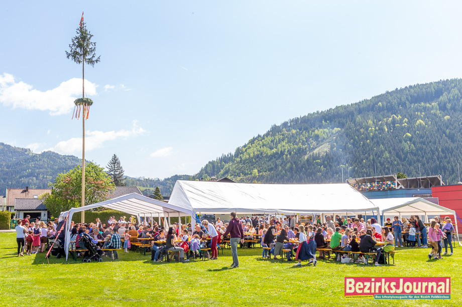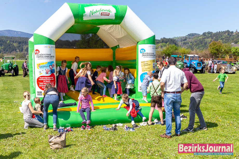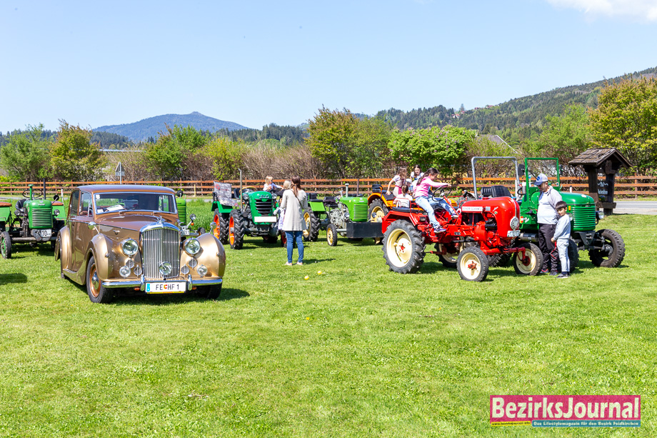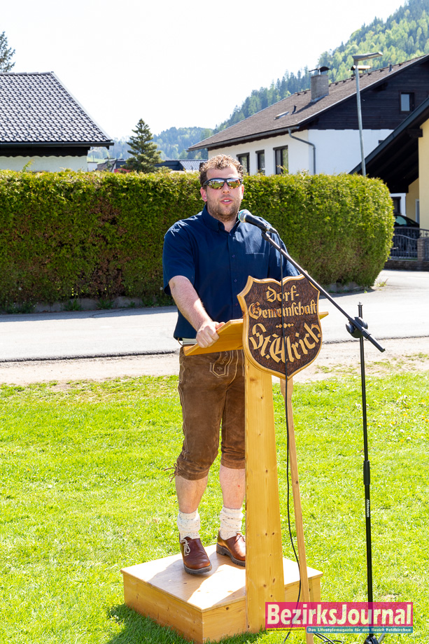 Die Kinder des Kindergartens St. Ulrich sowie die Schüler der örtlichen Volksschule präsentierten ein liebevolles Eröffnungsprogramm zur Maibaumfeier. Eltern wie Zuhörer zeigten sich begeistert. Redegewandt und mit humorvollen Kärntner Schmäh Einlagen führte Dorfgemeinschafts-Obmann Herbert Krassnig durch den Vormittag. Diakon Norbert Wohlgemuth hielt die feierliche Messe ab und segnete im Anschluss auch die Oldtimer-Traktoren und Automobile. Auch das Dorfquartett St. Ulrich spielte auf. Für Speis und Trank war ebenfalls bestens gesorgt, vor allem die hausgemachten Mehlspeisen waren ein Traum. Noch: Maibaumversteigerung, Lose mit netten Preisen, Oldtimer-Traktoren, Hüpfburg… Gesehen: Bürgermeister Martin Treffner mit Stadtrat Andreas Fugger uvam.