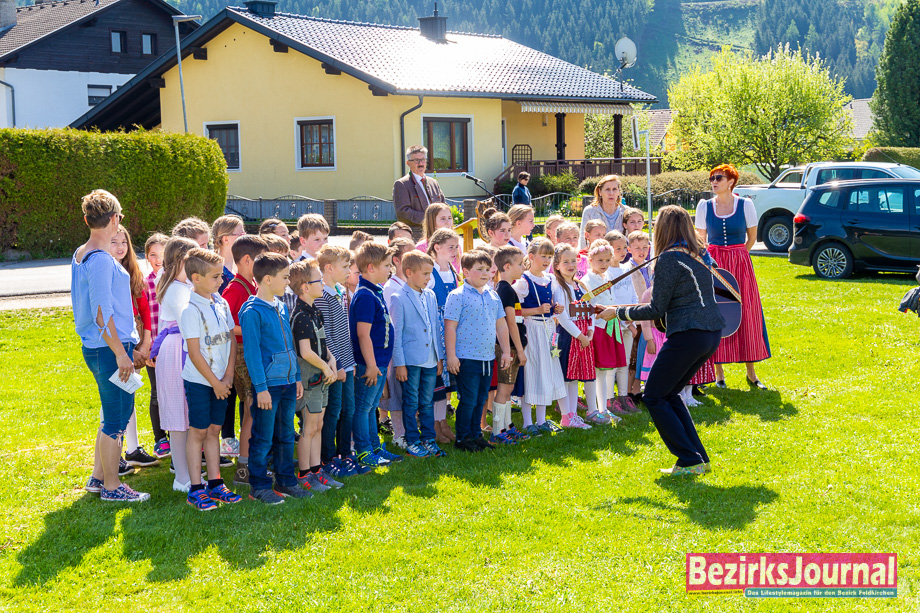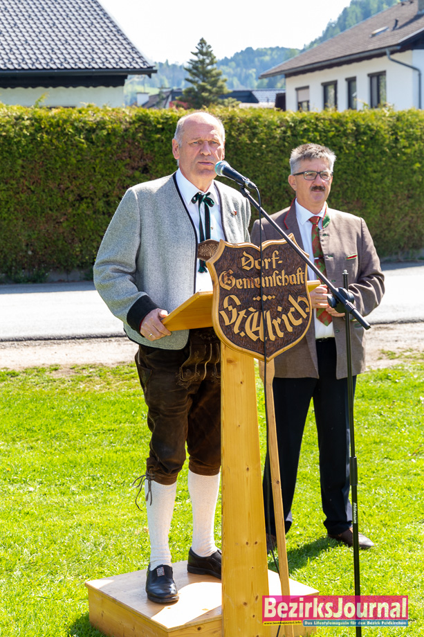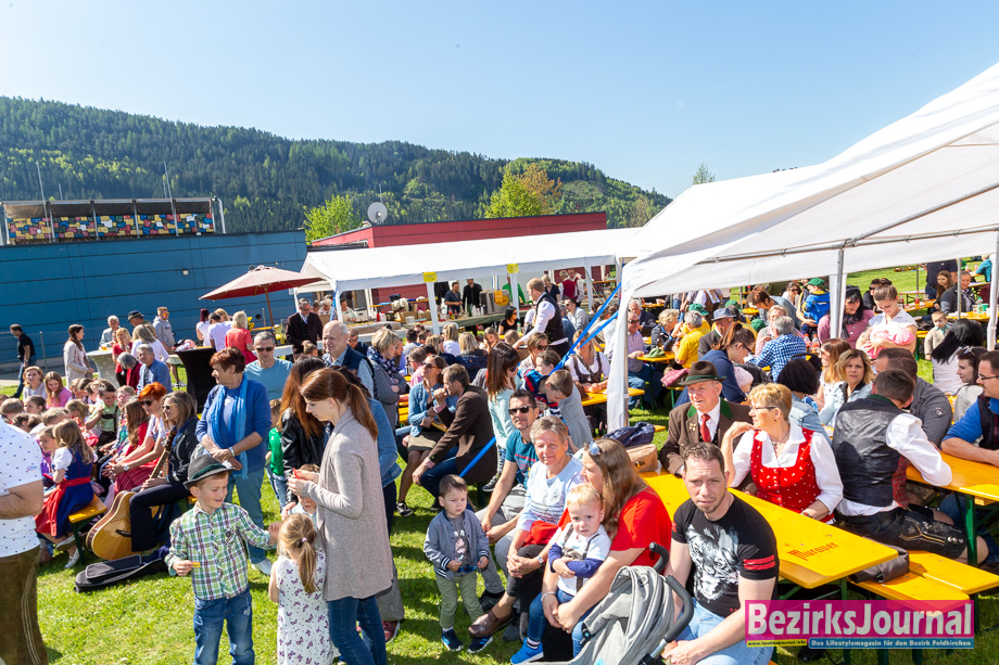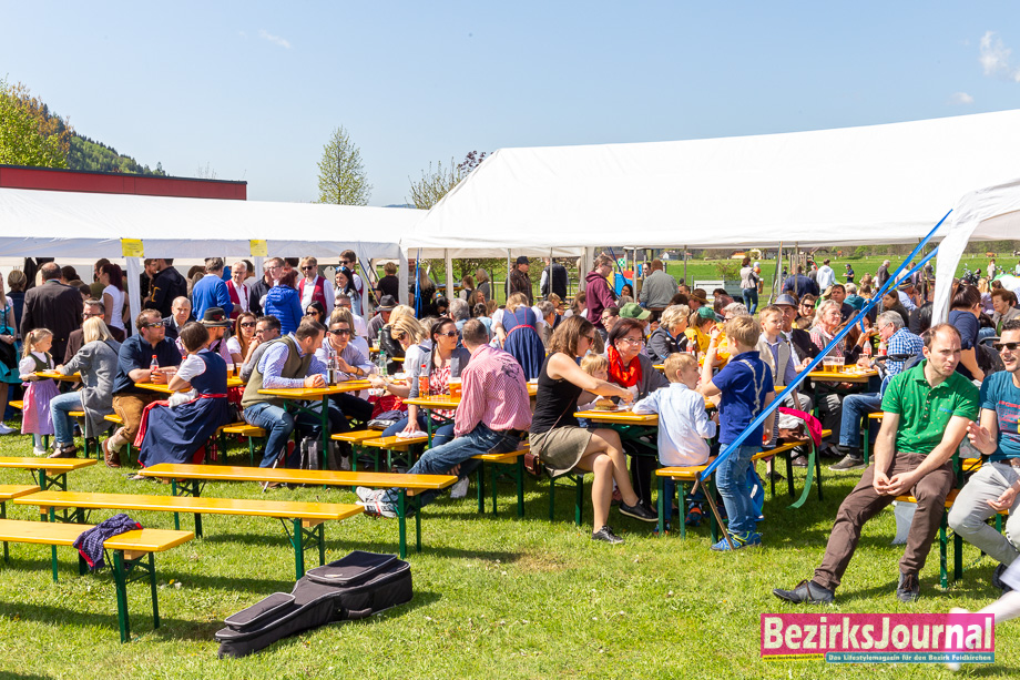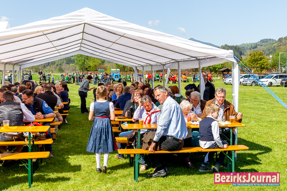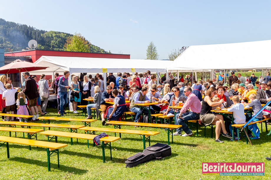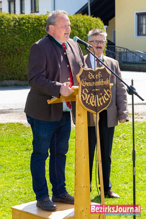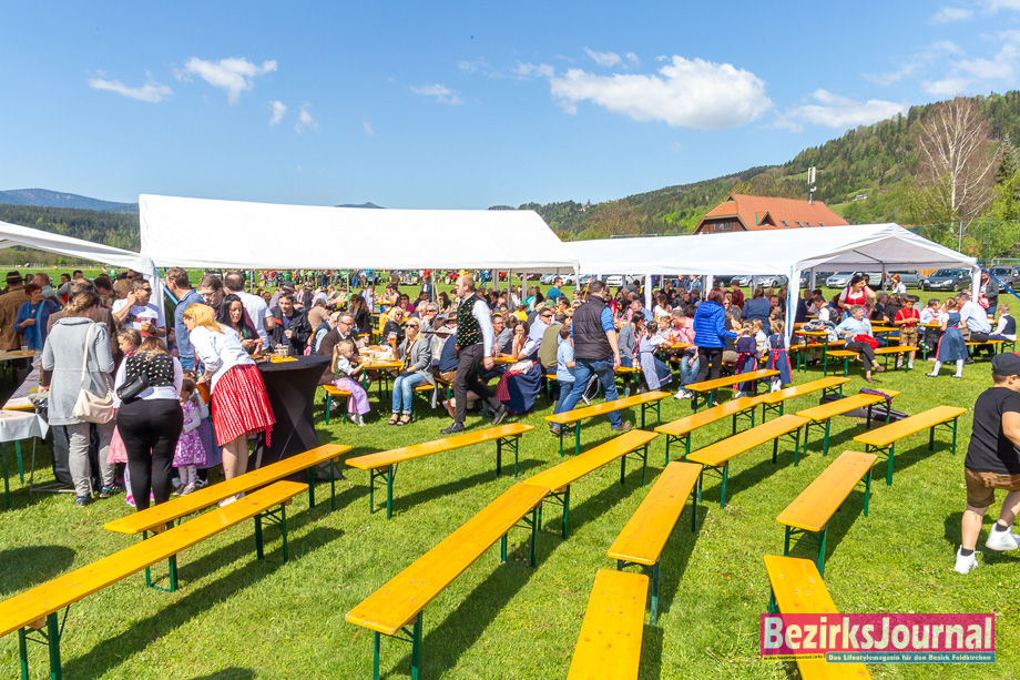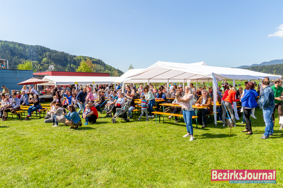 Die Kinder des Kindergartens St. Ulrich sowie die Schüler der örtlichen Volksschule präsentierten ein liebevolles Eröffnungsprogramm zur Maibaumfeier. Eltern wie Zuhörer zeigten sich begeistert. Redegewandt und mit humorvollen Kärntner Schmäh Einlagen führte Dorfgemeinschafts-Obmann Herbert Krassnig durch den Vormittag. Diakon Norbert Wohlgemuth hielt die feierliche Messe ab und segnete im Anschluss auch die Oldtimer-Traktoren und Automobile. Auch das Dorfquartett St. Ulrich spielte auf. Für Speis und Trank war ebenfalls bestens gesorgt, vor allem die hausgemachten Mehlspeisen waren ein Traum. Noch: Maibaumversteigerung, Lose mit netten Preisen, Oldtimer-Traktoren, Hüpfburg… Gesehen: Bürgermeister Martin Treffner mit Stadtrat Andreas Fugger uvam.