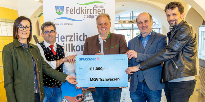 Ich möchte mich im Namen der Stadtgemeinde Feldkirchen für die Spende von 1.000 Euro beim Männergesangsverein Tschwarzen mit Obmann Günter Tschernitz recht herzlich bedanken. Der Betrag geht zu gleichen Teilen an zwei in Not geratene Feldkirchner Familien mit kleinen Kindern. Unser Dank geht auch an alle Vereine, Unternehmen und Personen, die uns immer wieder Spenden zukommen lassen, um bedürftigen Menschen in Feldkirchen damit noch besser helfen zu können. Danke!
