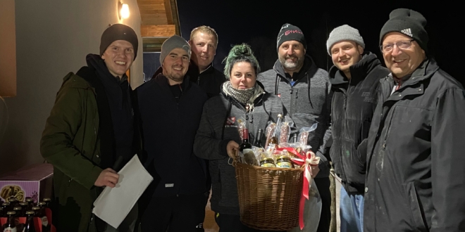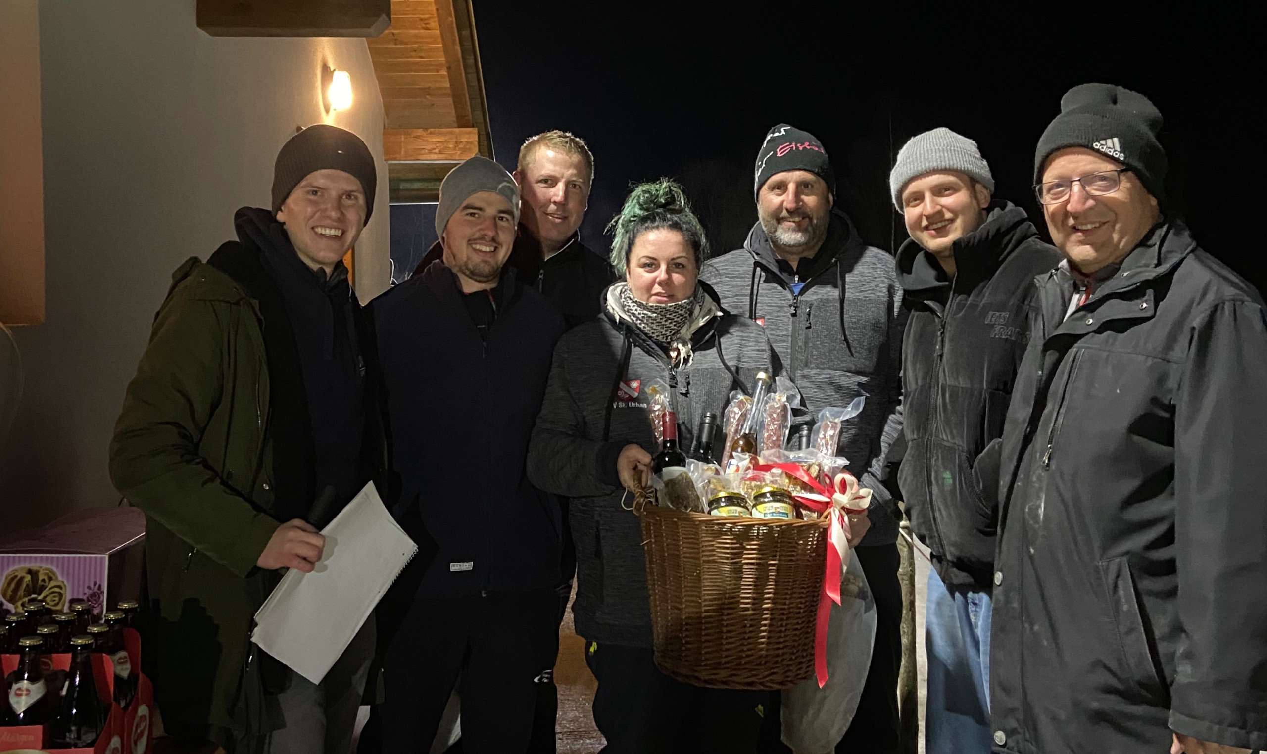 Die JVP St. Urban mit Obmann GV Maximilian Kogler lud am Freitag, den 2. Feber zum Kärntnerstock Nachtturnier ein. Schauplatz war die Eissportanlage in Rogg. Insgesamt 17 – höchst sportlich besetzte – Teams mit jeweils vier Personen rangen dabei um den begehrten Sieg. Diesen trug dann, nach einem heißen Battle, das Team mit Doppel-Weltmeister Alfons Marktl, Europameister Andreas Schurian, Sabine Kraschl und Benjamin Fillafer davon. Als Preise winkten Bauernkörbe randvoll mit regionalen Köstlichkeiten sowie verschiedensten Gutscheinen aus der Region. Am Siegerfoto von links: Obmann GV Maximilian Kogler, Benjamin Fillafer, Andreas Schurian, Sabine Kraschl, Alfons Marktl, Obmann-Stv. Alexander Sonvilla und GR Helmut Sonvilla.