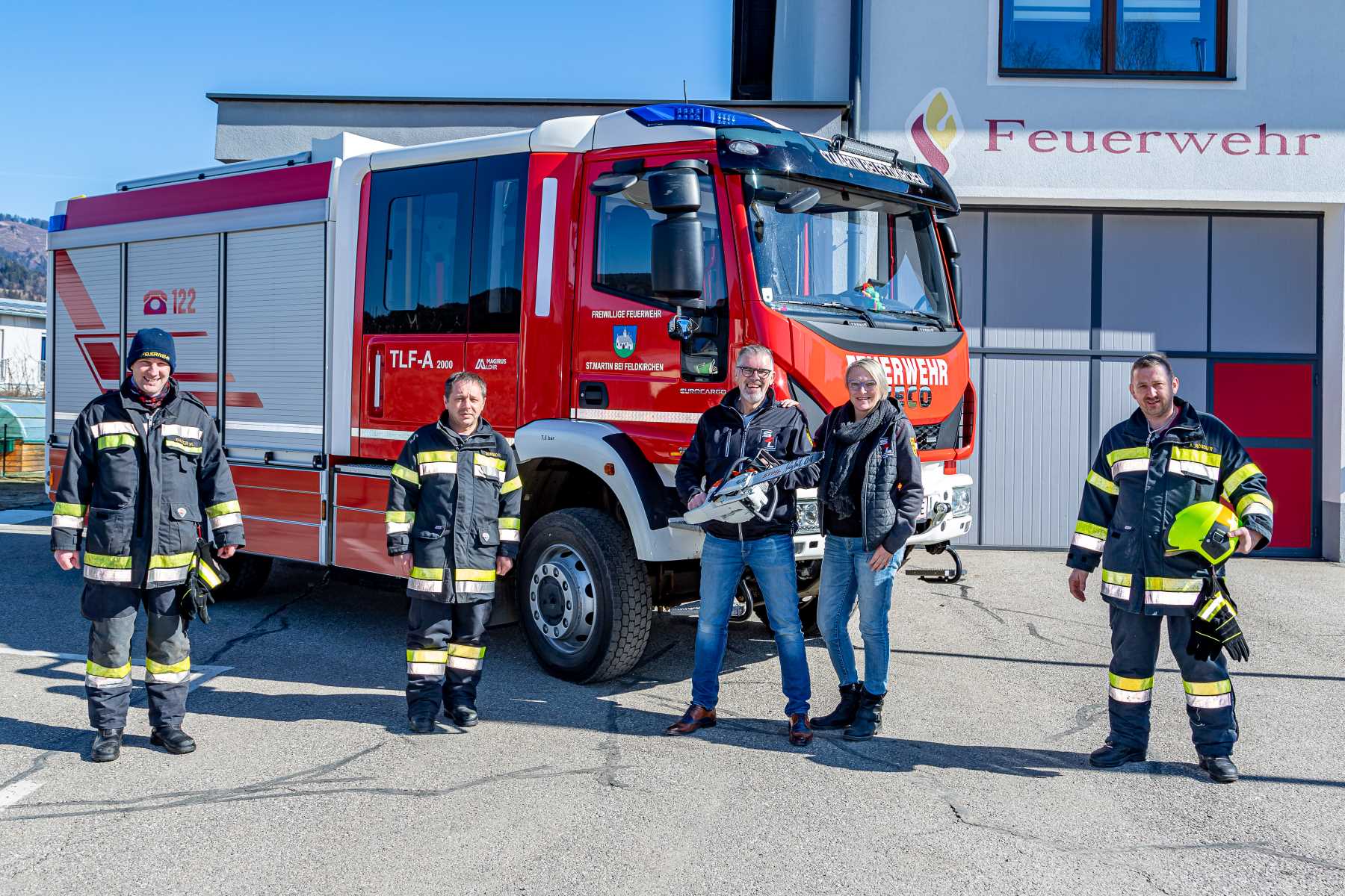 Roman Andreas Kril (Bild mitte), Chef des R.A.K Bildungszentrums in Feldkirchen, sponserte der Freiwilligen Feuerwehr von St. Martin eine nigelnagelneue Motorsäge. Die Florianijünger freuen sich über die Sachspende und bedanken sich herzlich für diese tolle Unterstützung!