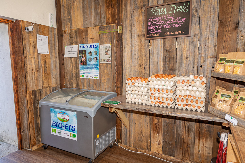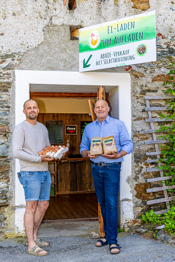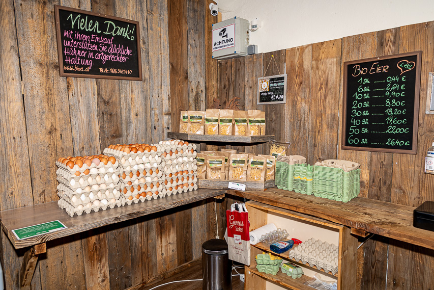 Lust auf frische Bio-Eier bekommen? Diese findet man im Hofladen der Familie Obereder in Gnesau. „Wir arbeiten eng mit regionalen Partnerbetrieben zusammen. So bieten wir auch Bio-Eis vom Tauchhammerhof, Mehle und Öle von Janezic sowie Milchprodukte vom Neuwirth-Hof und noch vieles mehr an“, so die Familie. Angeboten werden auch sieben verschiedene Pastasorten, die man alle im Hofladen findet. „Die Pasta aus unseren eigenen Eier produziert der italienische Pasta-Meister Giuseppe Noccera aus Feldkirchen für uns“, freut sich Alexander Obereder. Je nach Saison gibt es im Hofladen auch Honig, Erdäpfel (Natmeßnig)… – natürlich alles in Bio-Qualität.