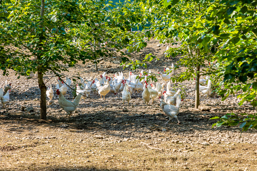 „Das Huhn stammt aus dem südostasiatischen Dschungel. Daher mag es eigentlich keine ungeschützten Freiflächen“, weiß Vollerwerbsbauer Alexander Obereder, der seinen Schützlingen ein wahres Paradies bietet: Sechs Hektar Hühnerauslauf, 100% österreichisches Bio-Futter – frei von Farbstoffen (färben den Eidotter künstlich gelber bzw. beinahe Orange), einen Wintergarten mit Sandkiste und Windschutznetz und ein stressfreies Leben. Auch für männliche Küken, die in einem konventionellen Betrieb normalerweise sofort nach dem Schlüpfen getötet werden. Übrigens: Das Huhn ist eigentlich ein Allesfresser. „Erst wir Menschen haben es mit unserem Mais- und Soja-Futter zum Vegetarier gemacht“, erklärt der leidenschaftliche Biobauer.