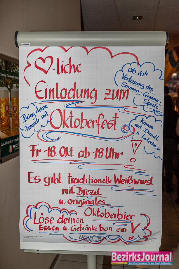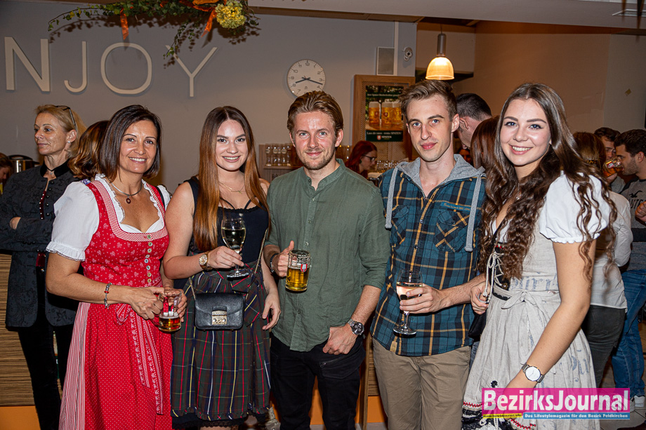 Kunden wie Freunde, zum Teil in Dirndl und Lederhose gekleidet, unterhielten sich bestens bei traditioneller Weißwurst, Brezn und originalem Oktoberbier. Danach wurden die genossenen Kalorien wieder brav abtrainiert. In Feierlaune zeigten sich: Bank-Regionalleiter Gunnar Zechner mit Gattin, Lekkerland Verkaufsleiter Hannes Sonvilla, VERDAS Feldkirchen Christian Duhs, Tilly Rindler, Mario Wunder uvam.