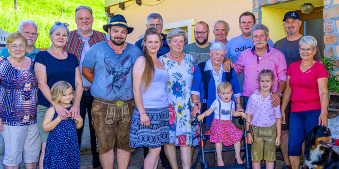 Die Witwe, ihr Mann ist leider schon vor vielen Jahren verstorben, hatte vor etlichen Wochen einen Unfall, der einen Oberschenkelhalsbruch nach sich zog. Nach Krankenhausaufenthalt und erfolgreicher REHA war es umso schöner, jetzt in großer Runde feiern zu können und auch den runden Geburtstag, ihren 90er, etwas, wenn auch nicht offiziell, nachzufeiern. „Meine Tochter Maria, mein Sohn Hubert, meine Schwiegertochter Monika, meine Enkelin Lissi und ihr Mann Rene, meine Urenkerln Isabella und Katharina, mein lieber Nachbar Werner, unser Bürgermeister Martin Treffner mit seiner Frau Ingrid, Feuerwehrkommandant Werner Drolle und noch viele mehr sind gekommen, um mit mir gemeinsam mein Hof-Jubiläum zu feiern“, strahlt Pepi. Zum Essen gab es für die Gratulanten-Schar a guate Jausnplatte vom Buttazoni vlg. Kraut.
