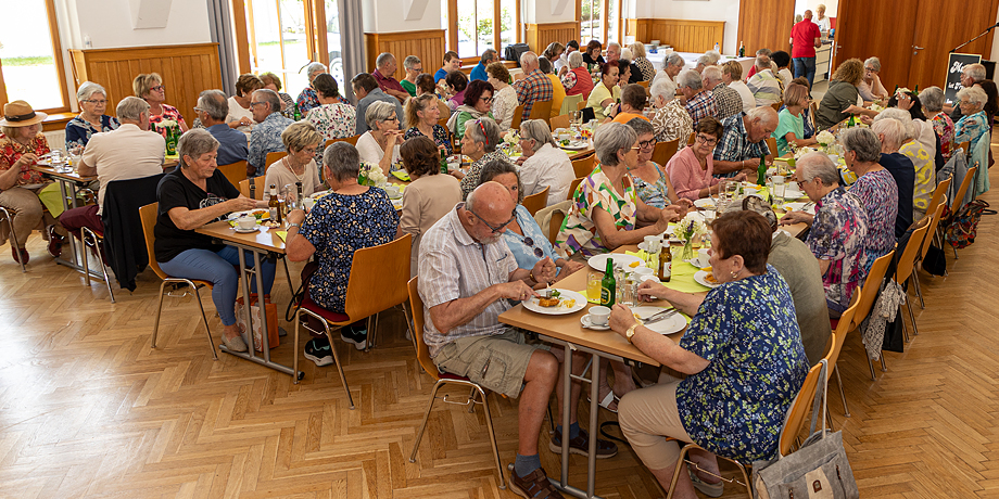 Anfang Juli lud der Seniorenbund Feldkirchen unter Obfrau GR Brigitte Bock zum traditionellen Saisonabschlussfest in den Pfarrhof in Feldkirchen ein. Über 100 Senioreninnen und Senioren folgten der Einladung und genossen die lustige Feier. Der Gaumen wurde mit frischen Salaten, Wienerschnitzel, Tzatziki und köstlichen Torten, Kuchen und Kaffee verwöhnt. Im Anschluss sponserte Bürgermeister Martin Treffner ein erfrischendes Eis.