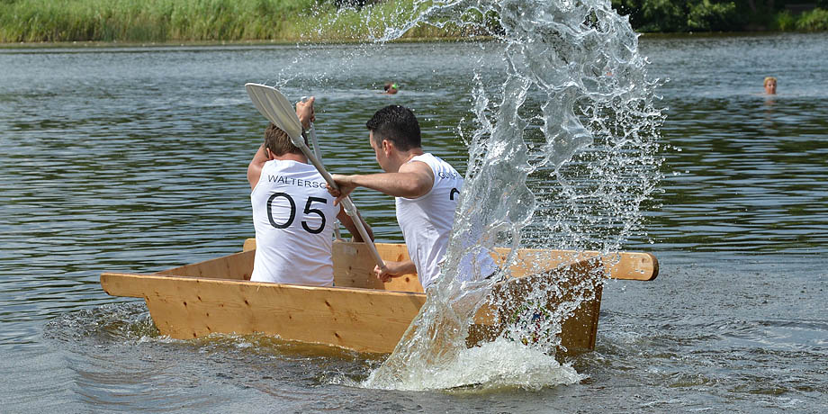 Bei der Sautrog-Regatta des Feldkirchner Faschingsklubs werfen sich am Sonntag, 21. Juli 2019, ab 14 Uhr Zweier-Teams in Bewerben für Kinder und Erwachsene in die Fluten des Flatschacher Sees.
