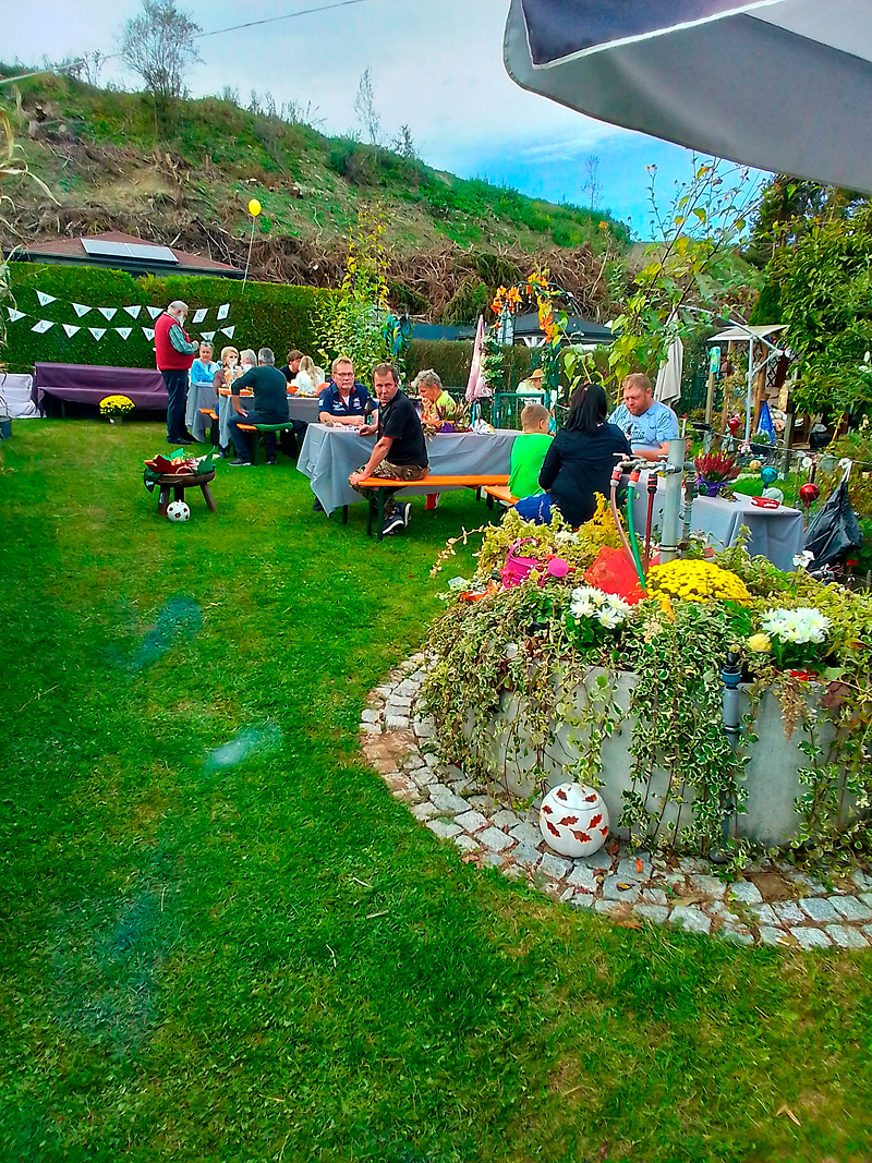 Der Schrebergartenverein Markstein lud im Herbst zum großen Schrebergarten-Grillfest ein. Zahlreiche Mitglieder kamen und genossen diesen Tag im Freien. Auch der Wettergott meinte es gut und so wurde der Tag zum Hit. Liebevolle Blumendeko, allerlei Strohballen zum Sitzen und kreative Bierkasten-Stehtische sorgten für eine angenehm-lustige Atmosphäre.