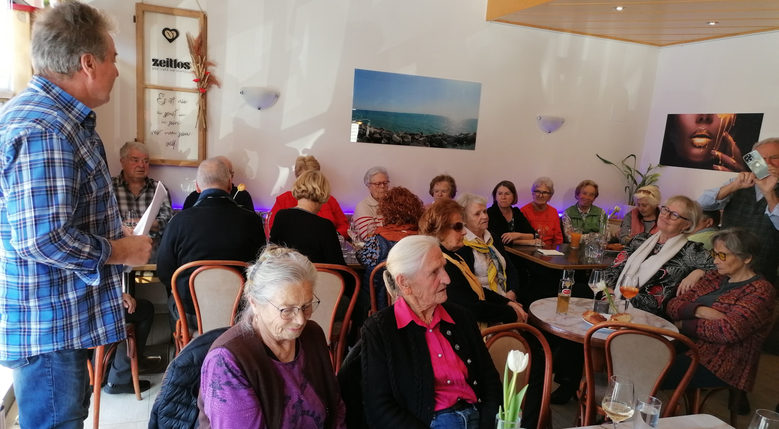 Bei flotter Harmonikamusik, zünftig aufgespielt von Gertrud Warmuth, trafen sich die Himmelberger Senioren:innen Anfang Feber im Cafe Zeitlos. Die Runde erwartete ein g’schmackiger Heringssalat und frische Faschingskrapfen. Auch auf die aktuellen Geburtstage stieß man an und verteilte Geschenke. Obmann Karl Trasischker, der sich bei den Mitgliedern für ihr zahlreiches Erscheinen bedankte, konnte auch drei neue Mitglieder begrüßen, die gerne in die Runde aufgenommen wurden. Das nächste Treffen findet am 13. März bei der Jausenstation Staudacher in Flatschach statt.