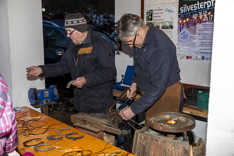 Adabei sind u.a. die DG Sittich, die in der „Alten Schmiede“ zum traditionellen Hufeisen prägen einlädt sowie der Hufschmied mit seinen Glücksanhängern beim Seewirt. An der Station der Wasserrettung, unterhalb der Jausenstation Hecher, gibt es das beliebte Riesen-Bleigießen mit einem übergroßen Suppenschöpfer. Das muss ja Glück bringen. Beim Kölblwirt, der an diesem Abend seine Buschenschank geöffnet hat, findet sich die Krippenausstellung. Ideal für einen gemütlichen Einkehrschwung. Auch die Grillmeister des seit dem letzten Jahr neu hinzugekommenen Vereins „Barbacoa BBQ“ mit Obmann Martin Primeßnig werfen wieder den Griller an und brutzeln u.a. saftige Burger. Für diese hat der Verein kürzlich den 3. Platz bei den Staatsmeisterschaften geholt! Mitglieder des Kulturvereins Klein St. Veit schlüpfen in Kostüme und werden als „lebende“ Glücksbringer – Schweinchen & Rauchfangkehrer – unterwegs sein. Bei der Maltschacher See Keramik gibt es eine Kunstausstellung samt Ausschank der FF St. Marin. Mit der Landjugend Klein St. Veit kann man Birkenbrettln mit der Jahreszahl 2026 brennen. Beim Stand des Fußballvereins SV M&R Feldkirchen steht das Glücksrad und lockt mit Preisen. Die Perchtengruppe Klein St. Veit lässt Kids Fell & Larve ausprobieren. Weinbauer Köck wartet mit Glühwein aus eigener Erzeugung auf…