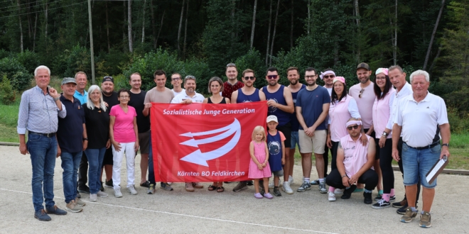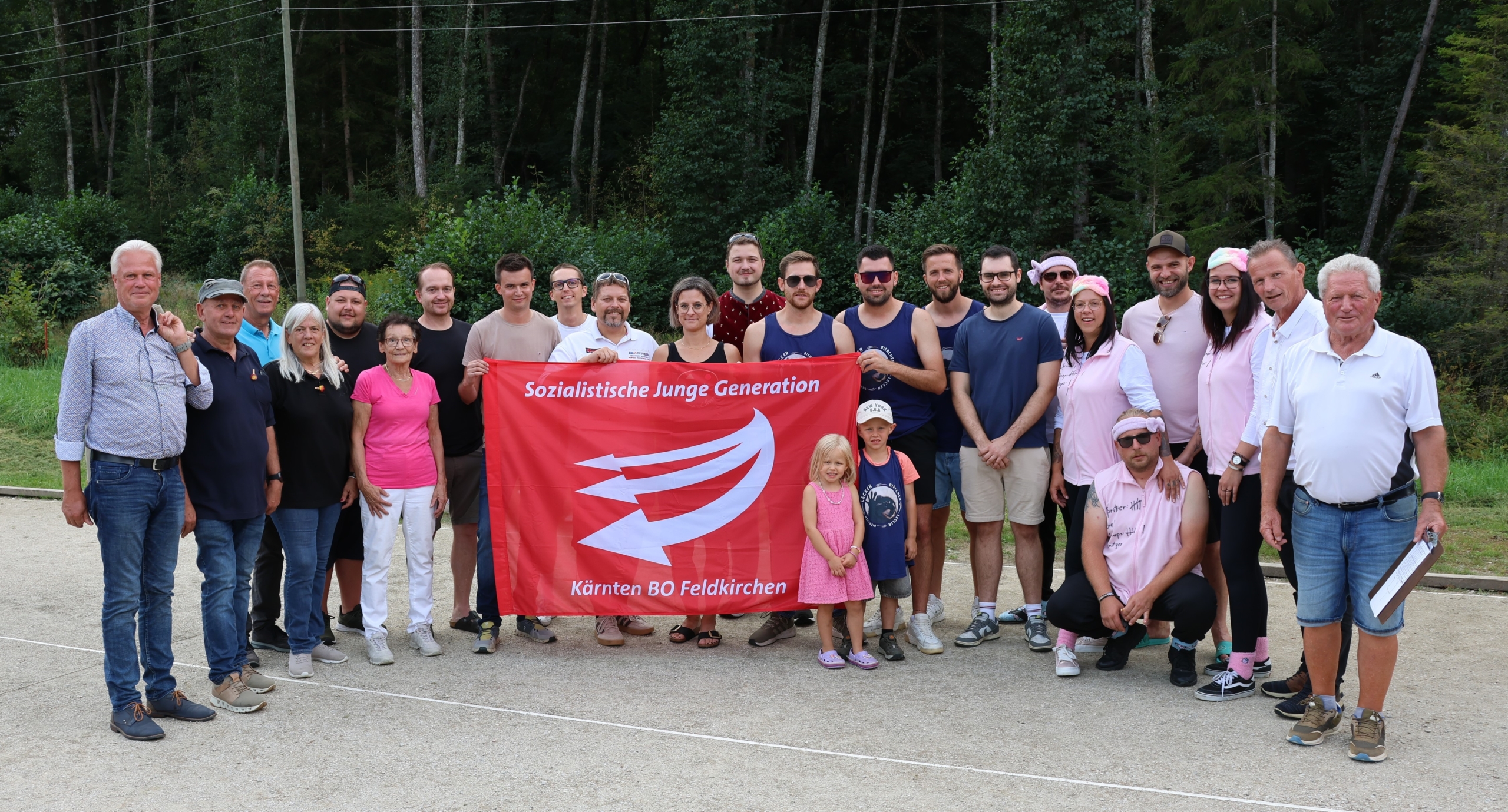 Flatschach – Bei strahlendem Sonnenschein und bester Stimmung richtete die Sozialistische Junge Generation (SJG) Feldkirchen kürzlich ihr traditionelles Boccia-Turnier auf den Tennisplätzen der Jausenstation Kräuter aus. Bezirksvorsitzender Marko Egger konnte fünf Teams begrüßen, die sich in geselliger Runde spannende Matches lieferten – mit dabei auch die Pensionisten aus Laboisen.
