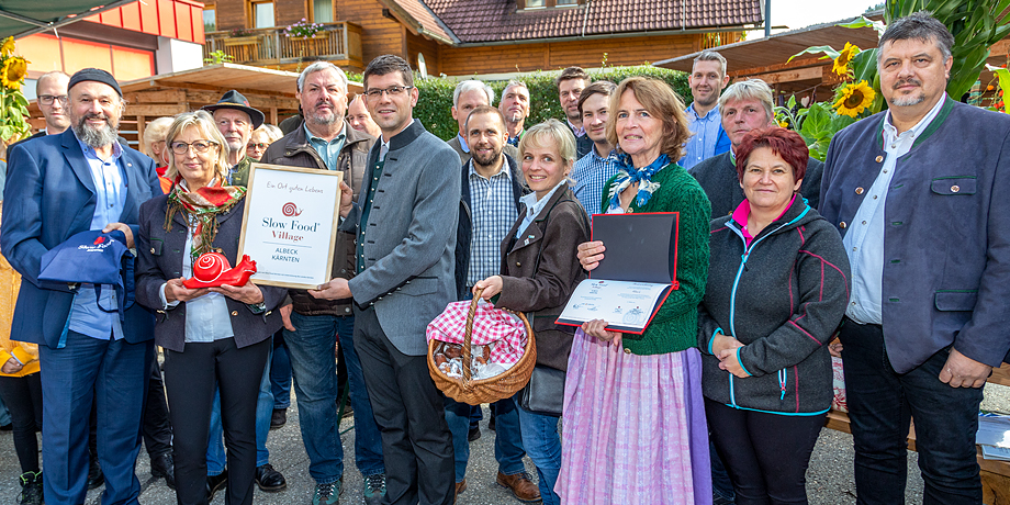 Nachhaltige Ernährung, regionale Esskultur, respektvolles Miteinander: Albeck ist nun Slow Food Village. Das zehnte in ganz Kärnten. Kurzerhand wurde dafür der Markttag am 9. Oktober zum Festtag erhoben. Prominenz stellte sich ein, die 3 Wilderer spielten zünftig auf und einige der insgesamt 23 Slow Food Betriebe boten allerhand Köstlichkeiten an.