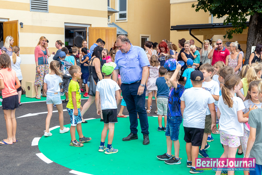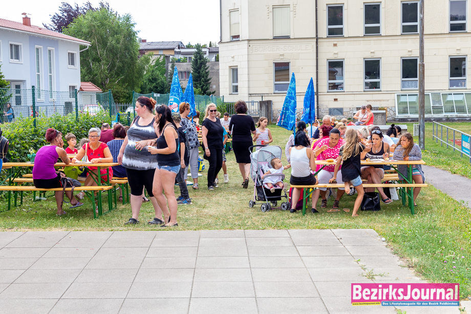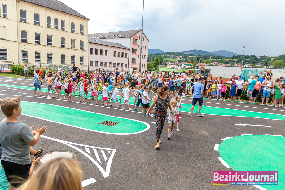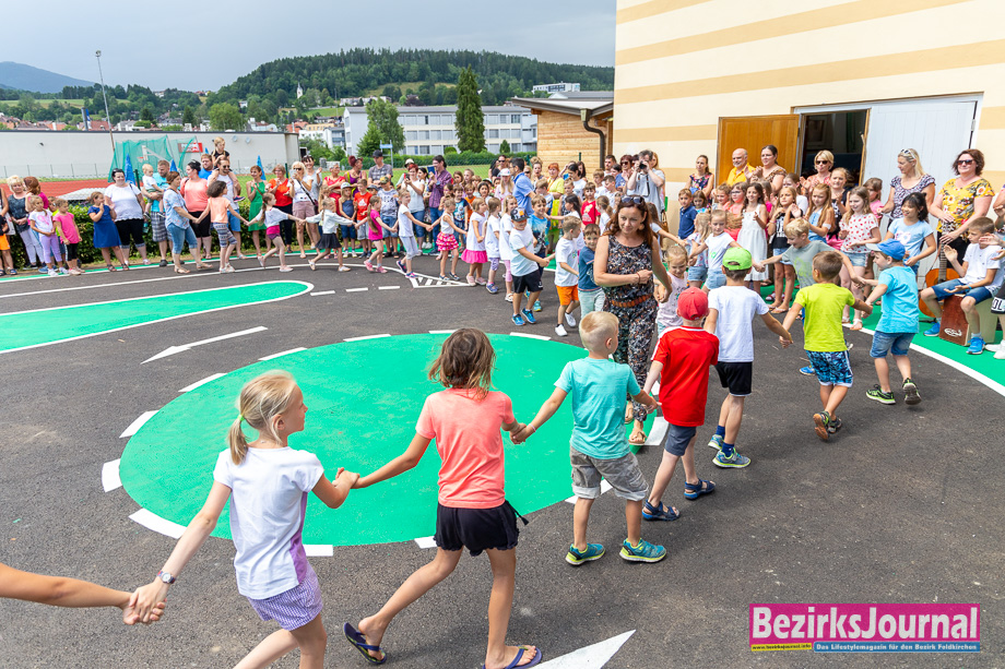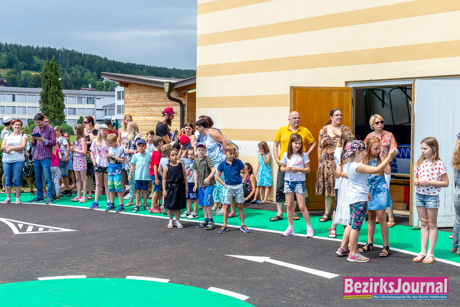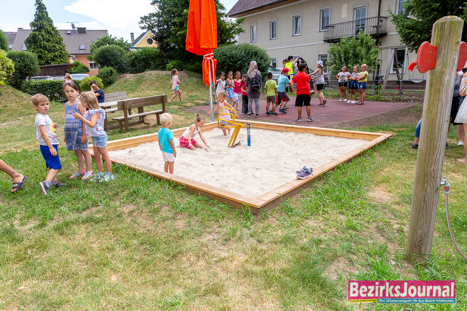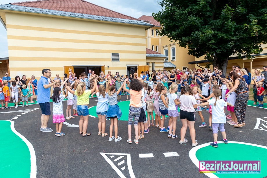 Die Volksschule Feldkirchen mit Direktorin Margot Stern-Isak feierte kürzlich ihr Sommer-Abschlussfest im Pausenhof. Die Kinder gestalteten das Fest mit schönen Gesängen. Auch Bürgermeister Martin Treffner war zugegen. Grillmeister Reinhold Göderle sorgte fürs leibliche Wohl.