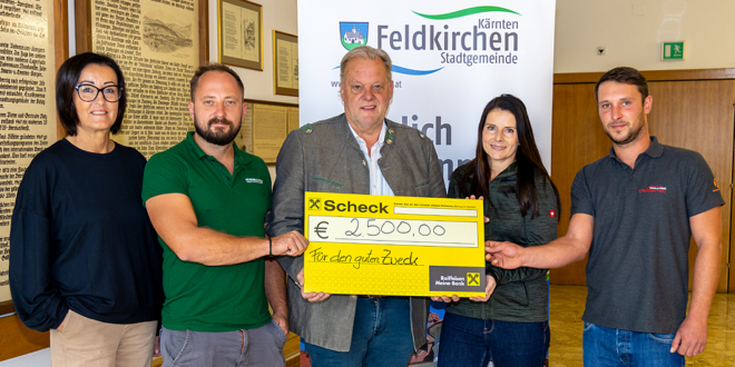 Kürzlich wurde der Spendenscheck an Bürgermeister Martin Treffner und Sozialstadträtin Andrea Pecile im Rathaus übergeben. Der Betrag kommt nun sozial benachteiligten Familien in Feldkirchen zugute.