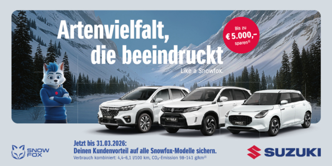 Mit den Suzuki Snowfox Sondermodellen kann man jetzt dank Snowfox-, Finanzierungs- und Versicherungsbonus ordentlich sparen. Dazu locken noch ein attraktiver Händlerrabatt und ein kuscheliges Plüschtier. Bis zu 5.000 Euro sind so drinnen. Die Aktion läuft noch bis 31. März 2026. „Wir machen bei dieser tollen Aktion, die auch einen Händlernachlass beinhaltet, mit“, informiert Geschäftsführer Konrad Salmina vom Autohaus Pirker in Feldkirchen und Weitensfeld.