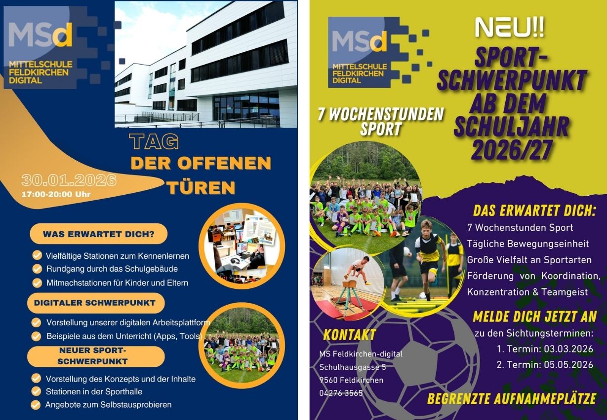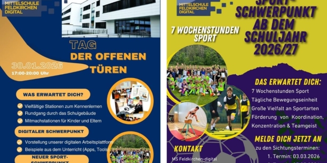 Die Mittelschule Feldkirchen digital (MSd) lädt alle interessierten Familien herzlich zum Tag der offenen Türen ein. Am 30. Januar 2026 öffnen sich die Türen der Schule von 17:00 bis 20:00 Uhr und geben einen umfassenden Einblick in das schulische Leben und das vielfältige Bildungsangebot.