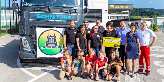 Im Beisein von Bürgermeister Martin Treffner, Rot-Kreuz Bezirksstellenleiter Gerhard Meinhard und Sozialreferentin StR Renate Dielacher hat der Verein „Charity Projekt Trucker for Kids“ kürzlich seinen Spenden-Scheck im Wert von über 4.200 Euro übergeben. Dieser wurde stellvertretend von VS-Feldkirchen Direktorin Margot Stern-Isak übernommen. Der Betrag kommt nun vier beeinträchtigten Kindern in Feldkirchen zugute.
