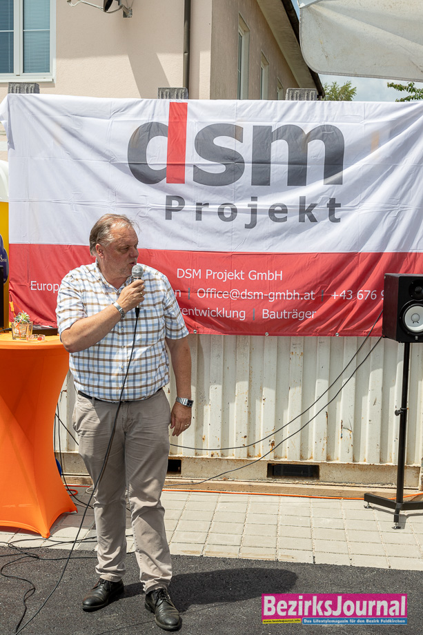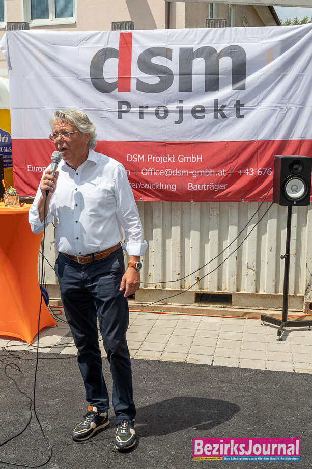 Bürgermeister Martin Treffner betonte in seiner Ansprache das er stolz sei, dass in der Feldkirchner Innenstadt hochwertiger Wohnraum geschaffen werde. Die zentrale Lage, die gute Verkehrsanbindung und die hohe Lebensqualität in Feldkirchen punkten bei den Wohnungssuchenden. Dem Trend entsprechend „Leben in sauberen Lebensräumen zwischen den Ballungszentren“ hat hier Feldkirchen viel zu bieten.